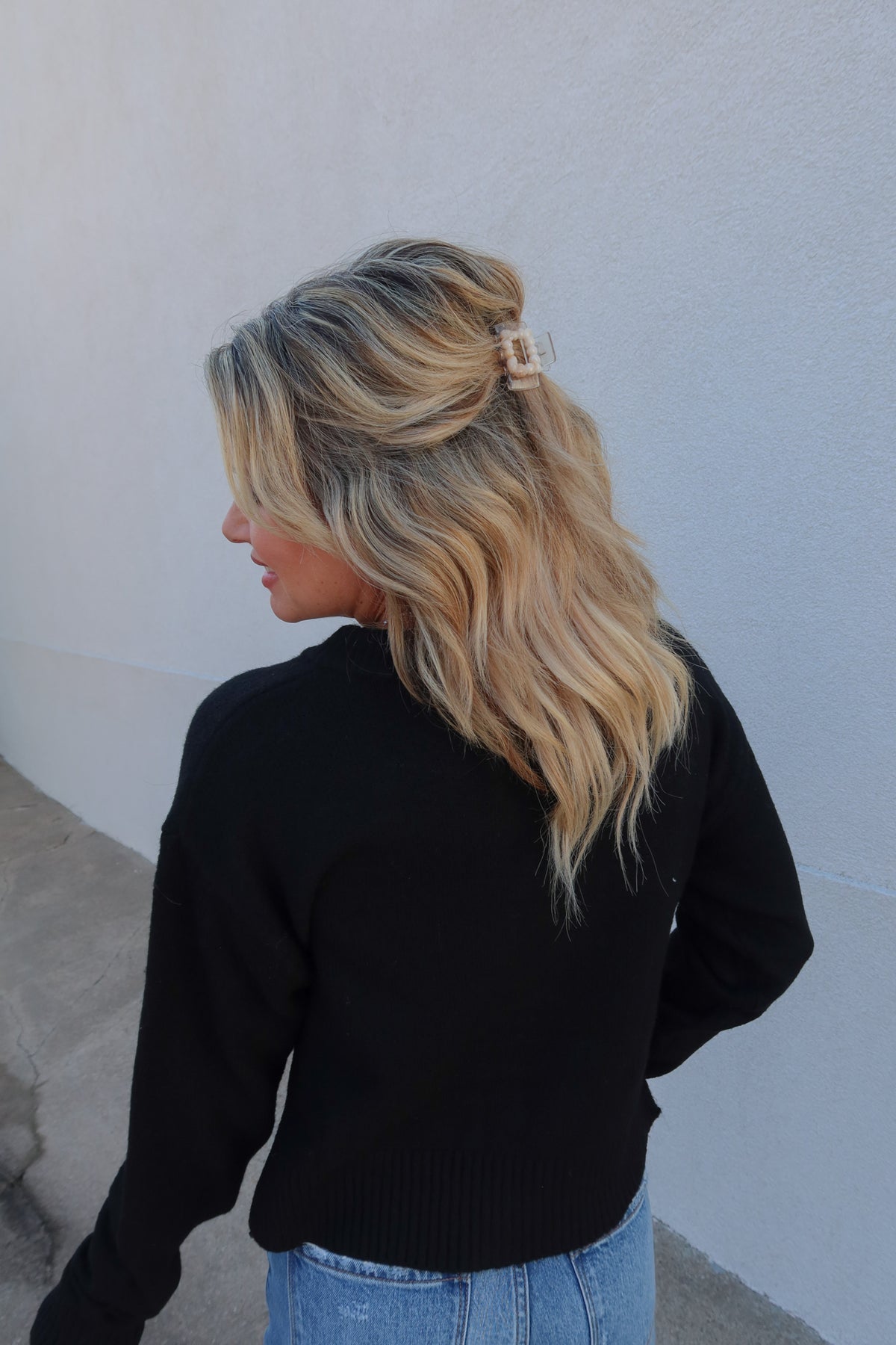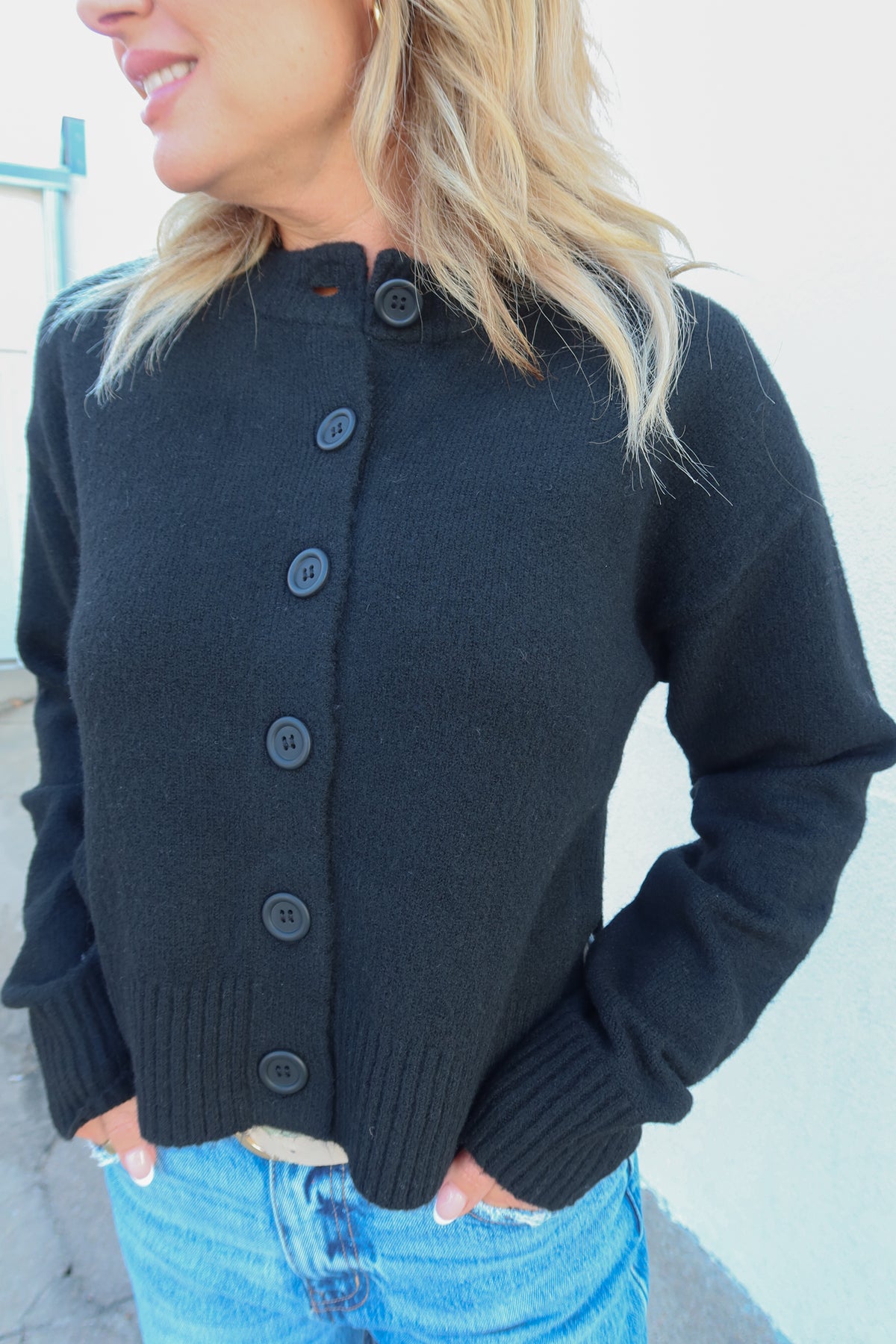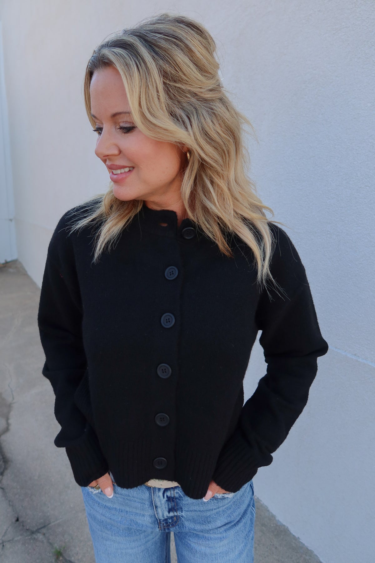 Elevate your fall wardrobe with this Black Button Up Sweater—a chic and cozy layering piece perfect for cooler days. Its versatile design pairs effortlessly with your favorite outfits, offering warmth without sacrificing style. Whether worn open over a tee or buttoned up for added comfort, this sweater is a must-have for embracing the season in effortless sophistication.