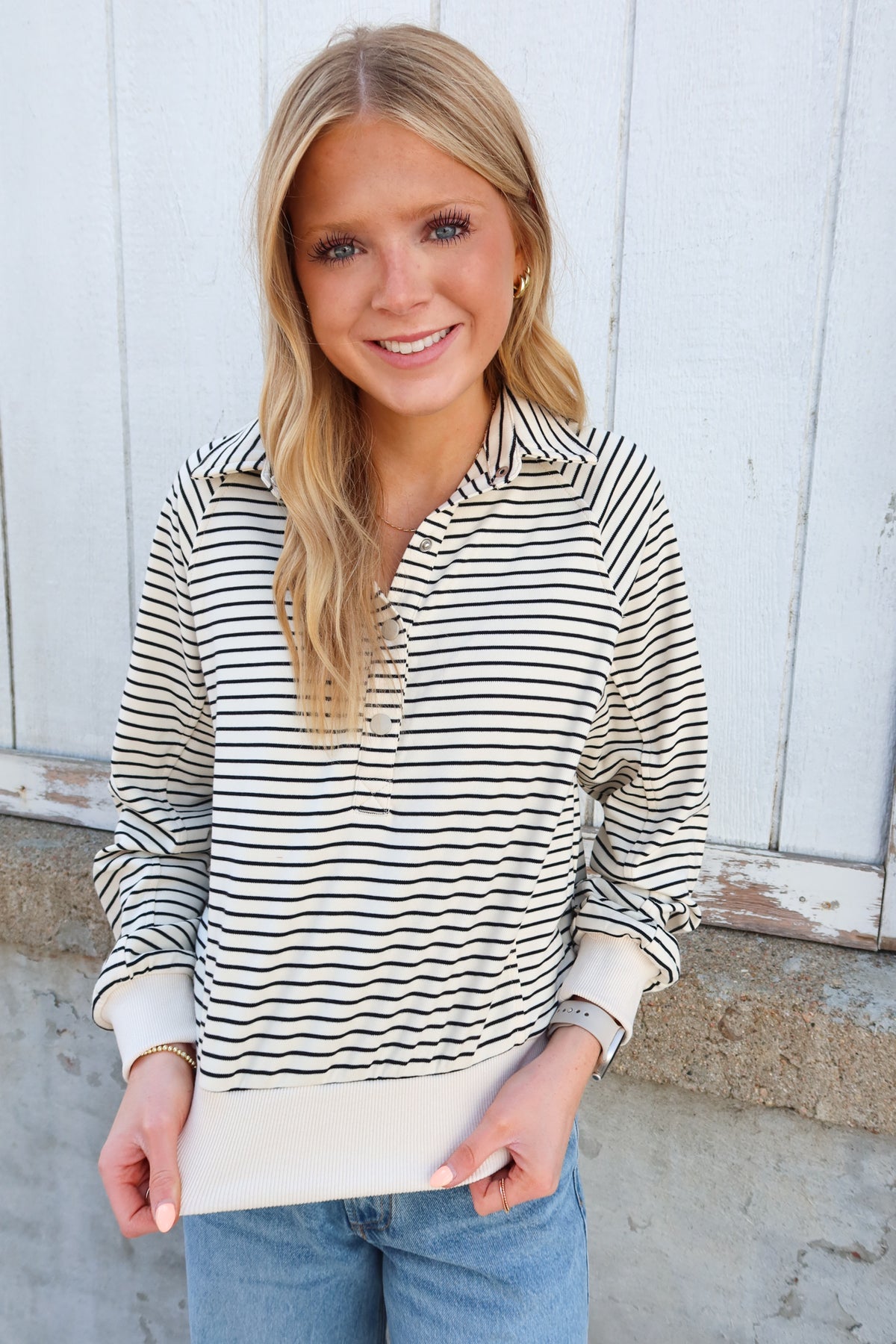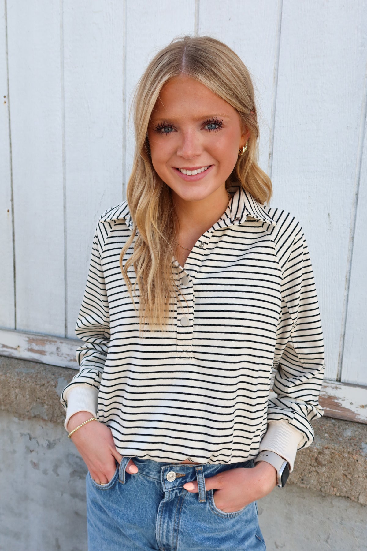 The Clean Lines Collared Pullover Top offers a sleek, minimalist design that enhances your look with polished simplicity. Its crisp collar and streamlined silhouette provide a refined touch, perfect for both professional settings and casual days. Crafted for a comfortable fit, this top effortlessly blends style and ease, making it an ideal choice for a modern wardrobe staple. Elevate your everyday outfits with clean sophistication.