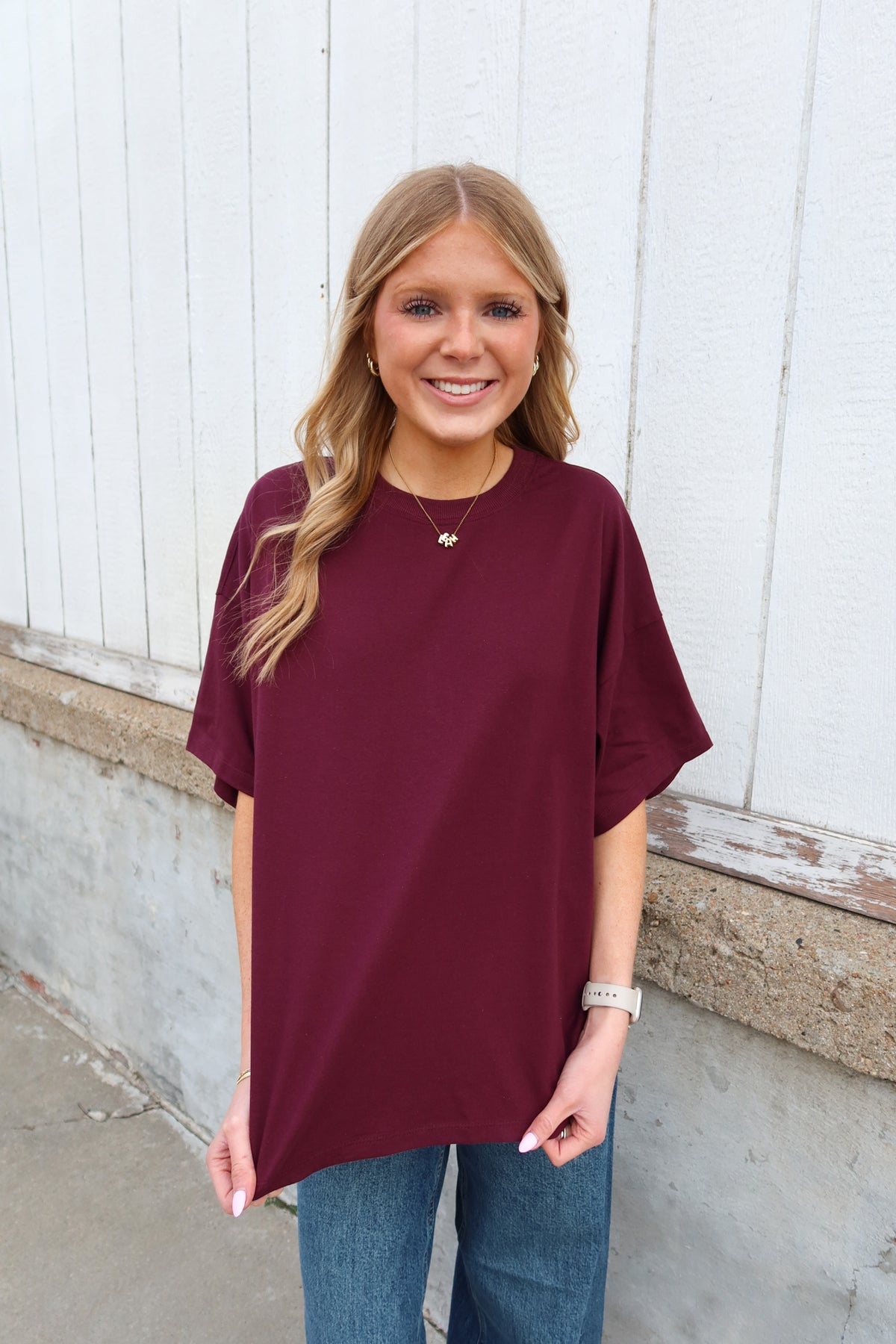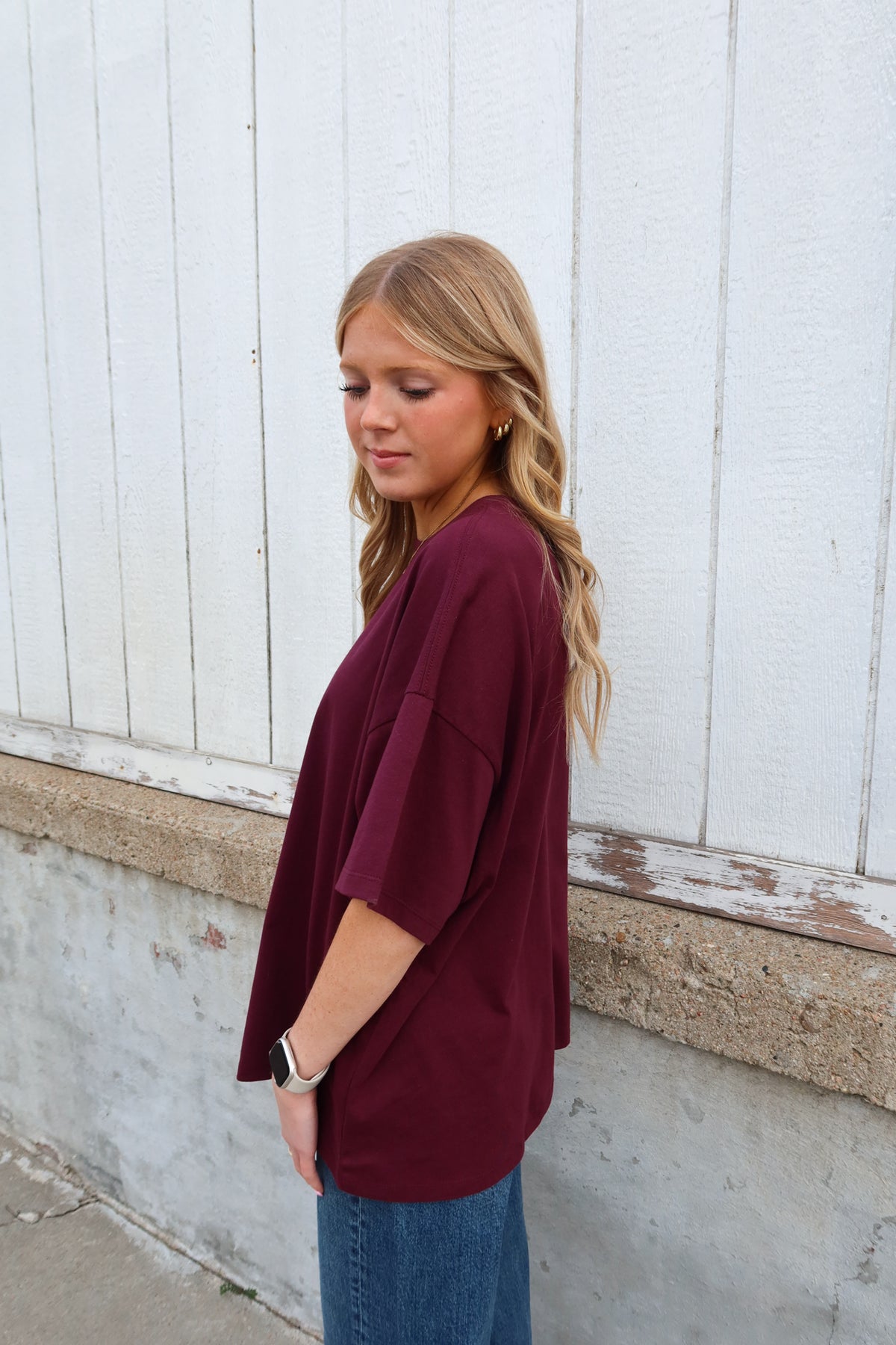 Experience effortless elegance with the Dark Cherry Short Sleeve Top. Crafted for comfort without sacrificing style, this structured tee offers a flattering fit. Its rich dark cherry hue adds a touch of sophistication, making it perfect for both casual wear and refined occasions. Elevate your wardrobe with this versatile essential that combines softness and form for a polished, confident look.