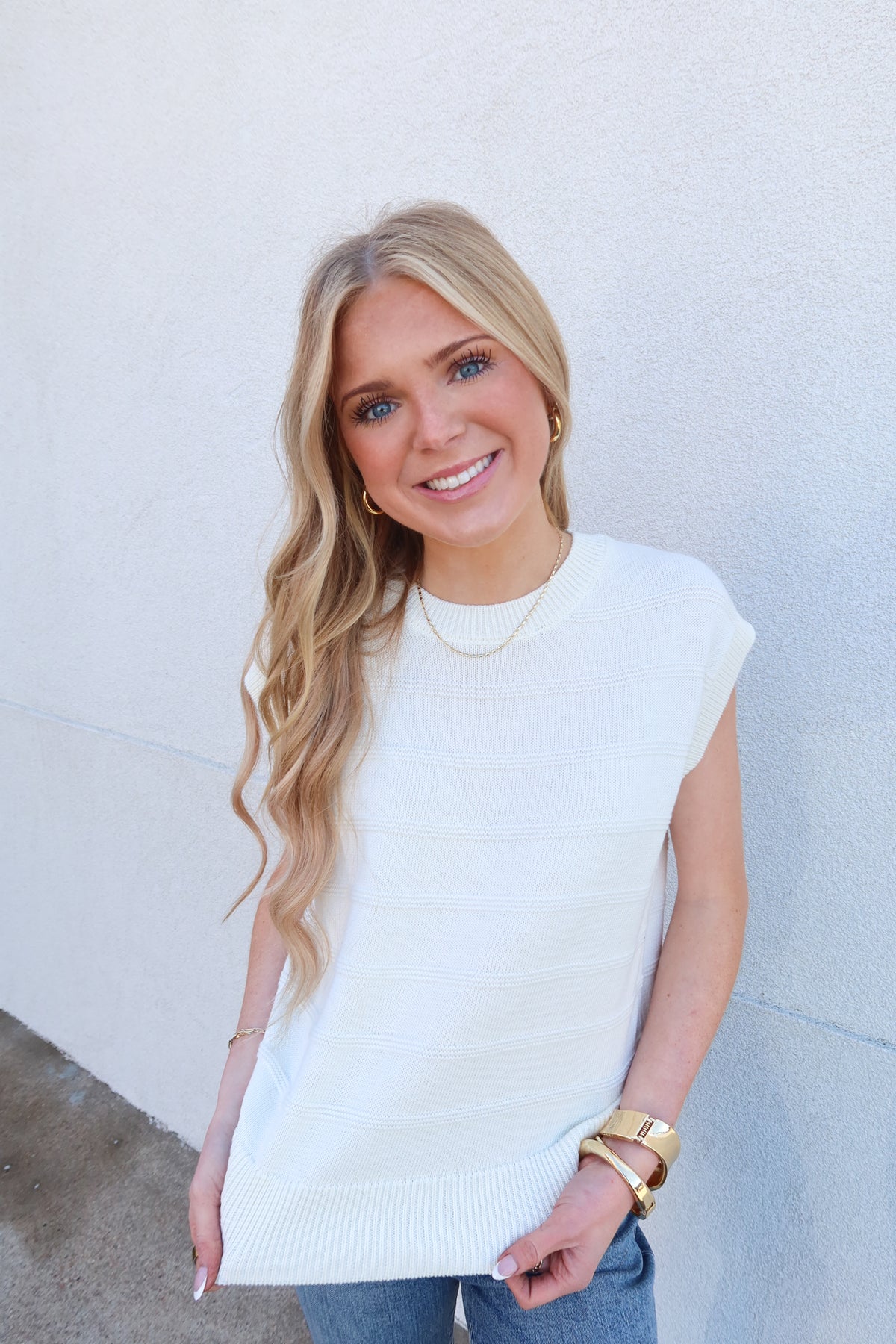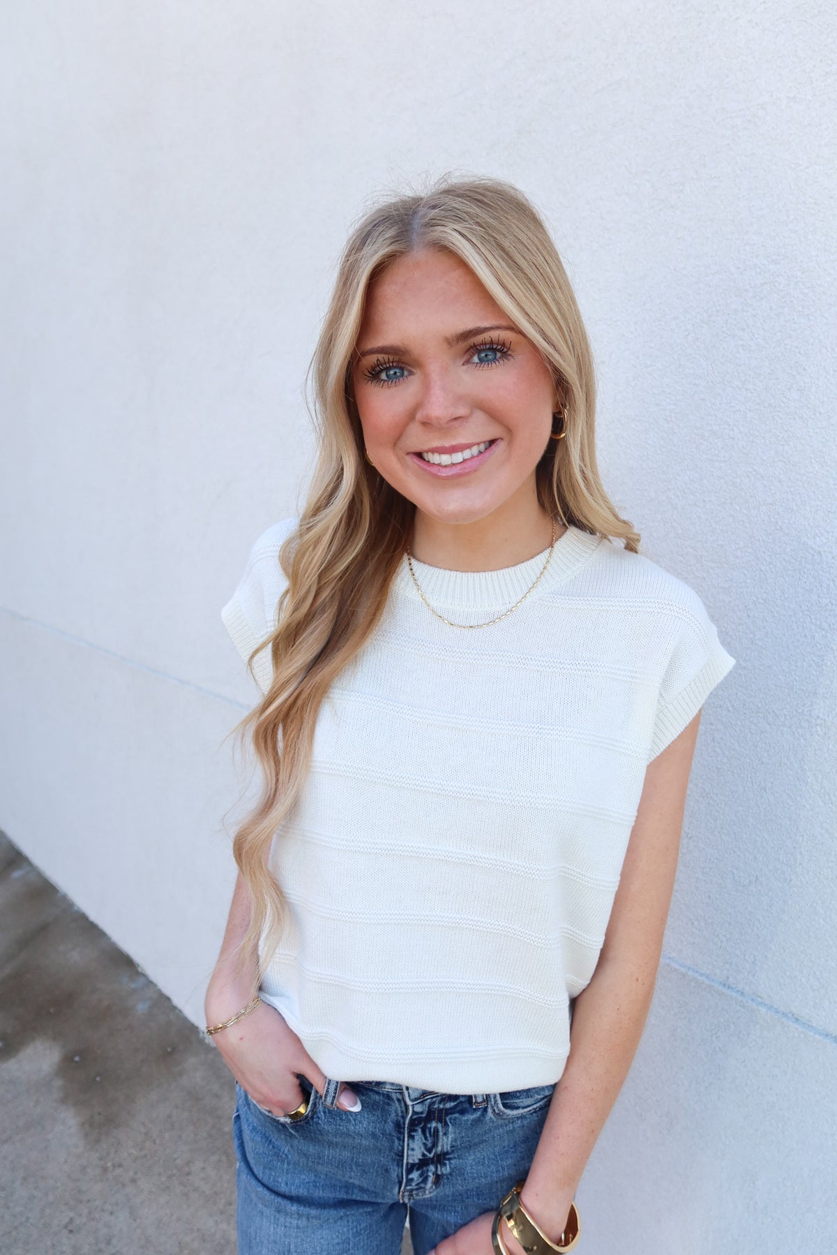 Discover effortless style with this cream and stripe sweater. Crafted from quality knit fabric, it delivers a comfortable fit that works for any occasion—whether you're dressing up or keeping it casual. The neutral palette makes it an ideal layering piece that coordinates with virtually any item in your closet. Durable construction ensures this sweater remains a go-to favorite season after season.