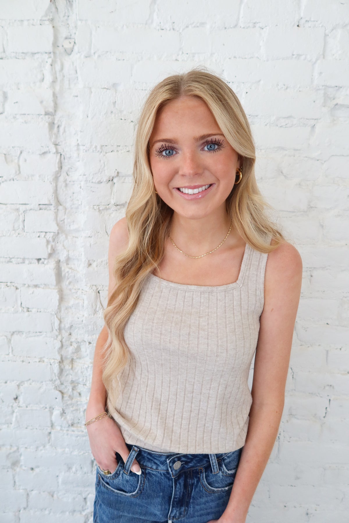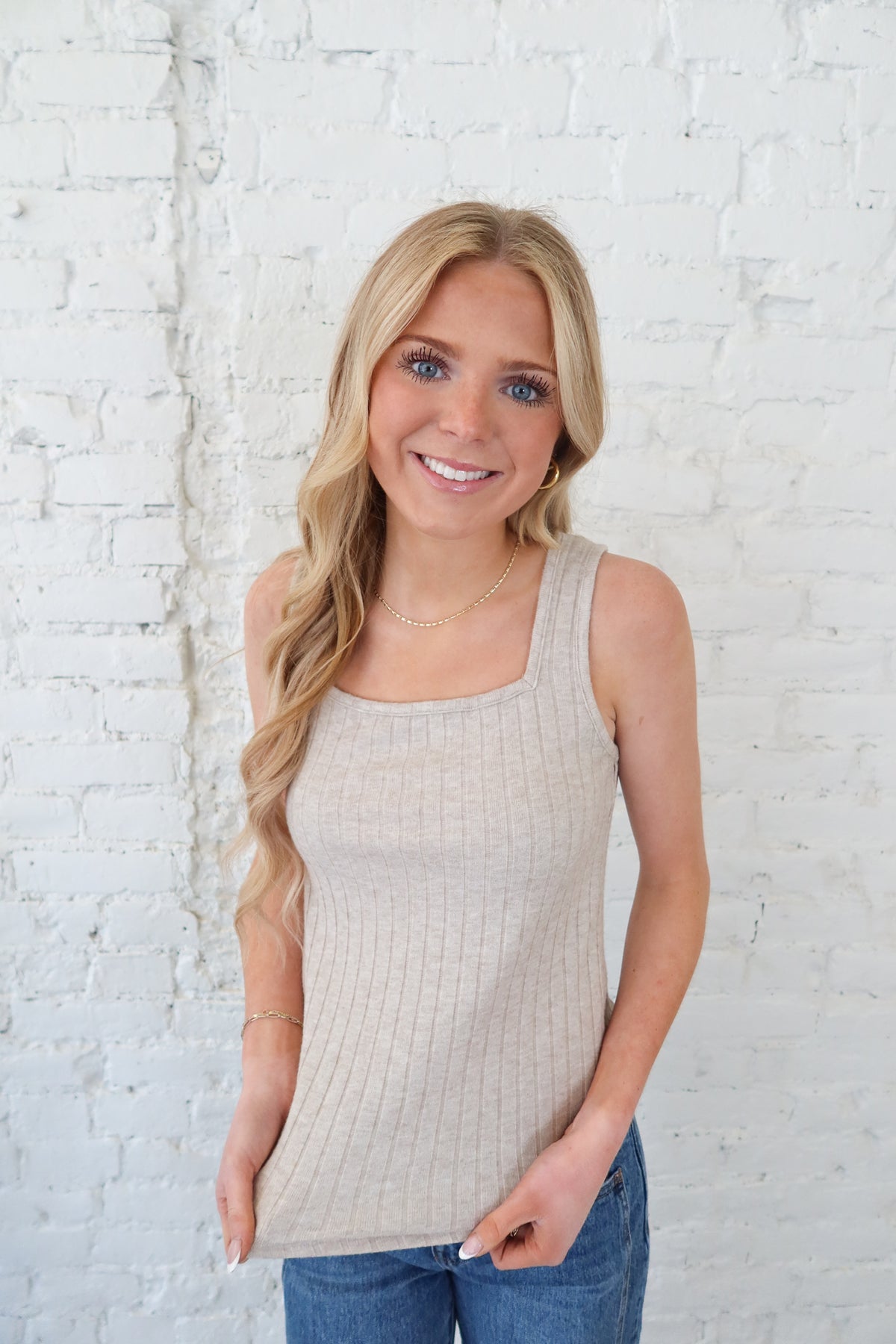 Effortless style meets comfort in this casual tank featuring a flattering square neckline. Perfect for layering or wearing solo, this versatile piece transitions seamlessly from weekend errands to relaxed gatherings. The relaxed fit and breathable fabric make it an essential addition to any casual wardrobe. Available in a warm mocha tone that pairs beautifully with your favorite denim or neutral bottoms.