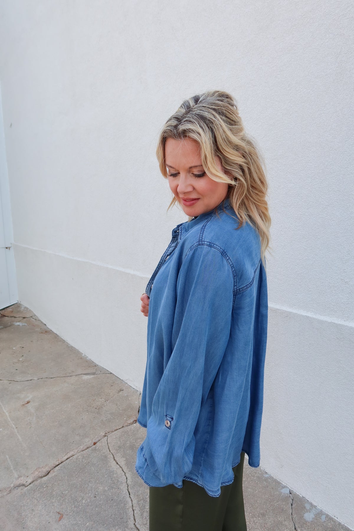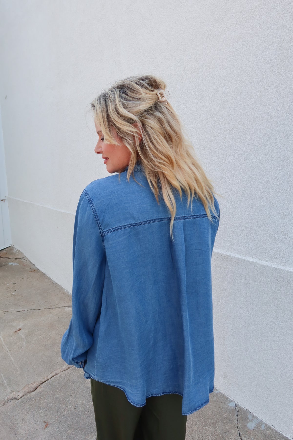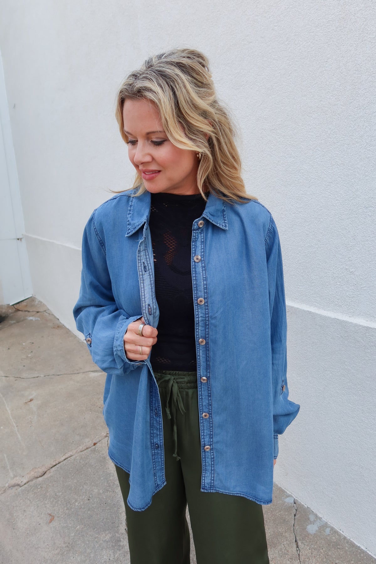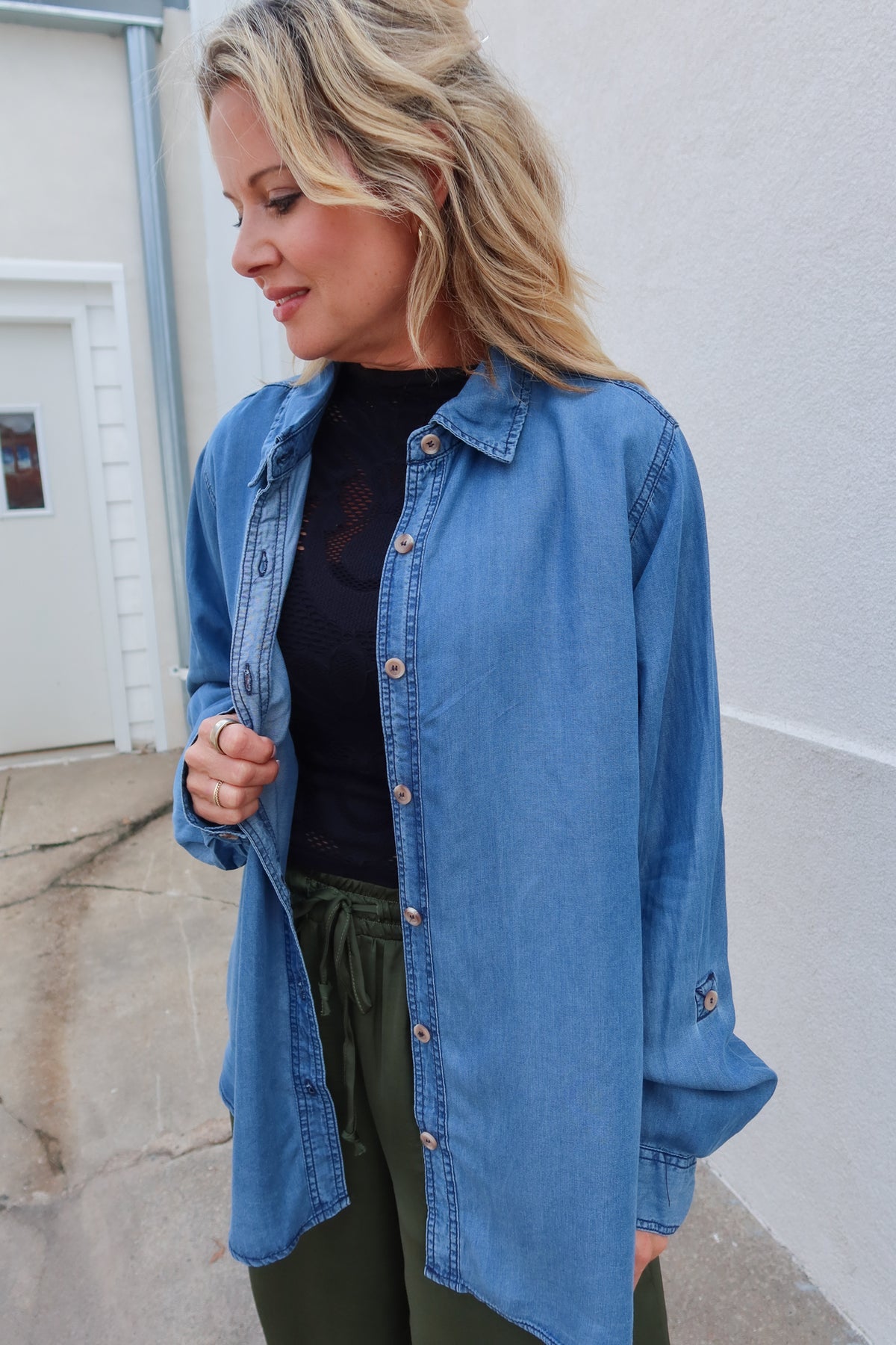 Elevate your casual wardrobe with the Denim Daze Top, a versatile piece designed for effortless style. Crafted from soft, durable denim, it offers a comfortable fit that moves with you throughout the day. Its timeless design pairs perfectly with jeans or skirts, making it ideal for both laid-back weekends and casual outings. Embrace easygoing sophistication and make the Denim Daze Top your new go-to choice for everyday confidence.