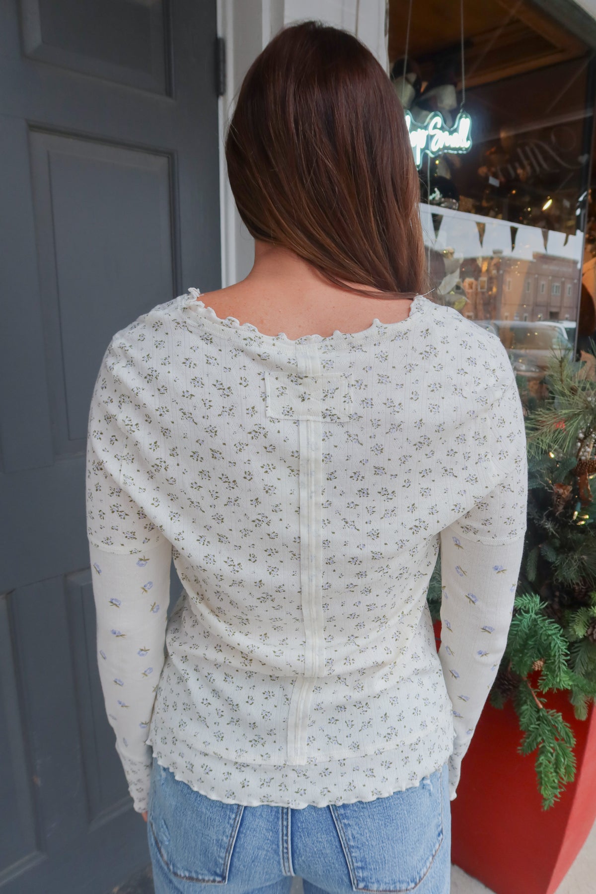 Discover effortless elegance with this Blue Floral Print Lettuce Hem Fitted Top. Crafted from ultra-soft fabric that feels luxurious against your skin, this fitted style flatters your silhouette while the delicate floral print adds a touch of feminine charm. The signature lettuce hem and neckline create a refined, polished finish that elevates any casual or dressy occasion. Perfect for layering or wearing solo, this versatile piece becomes an instant favorite in your wardrobe.