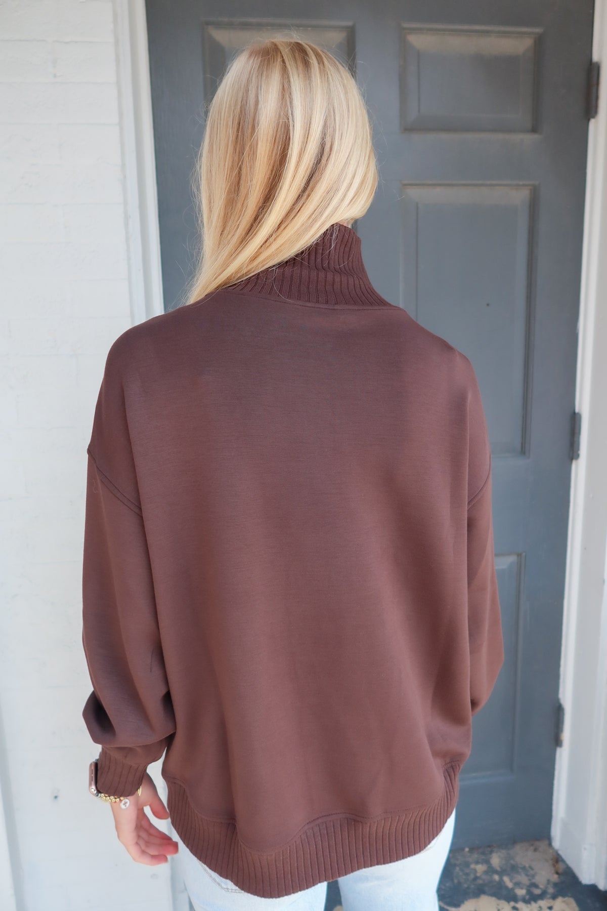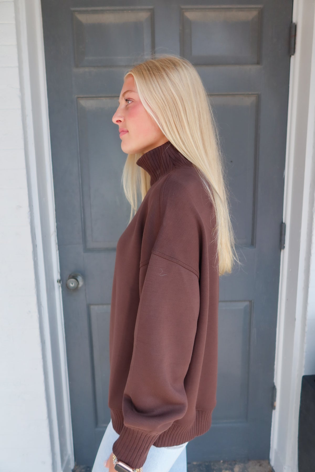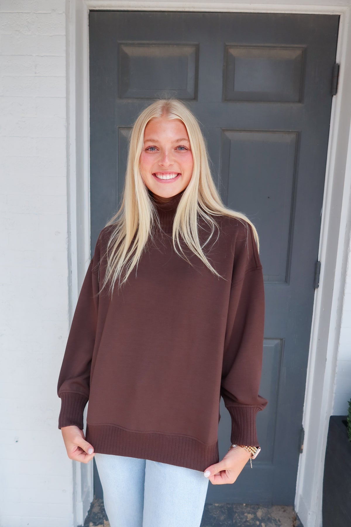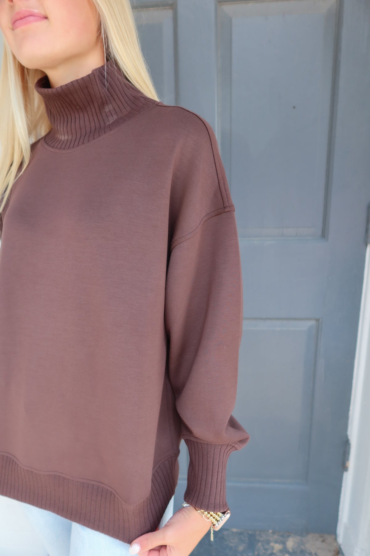 Stay cozy and stylish with the Cafe Corner Espresso Modal Rib Mock Neck Pullover Top. Crafted from a thick, soft modal blend, this ribbed turtleneck sweater offers exceptional warmth and comfort. Its snug fit and elevated neckline make it perfect for layering or wearing solo during chilly days, ensuring you feel both relaxed and chic wherever you go.