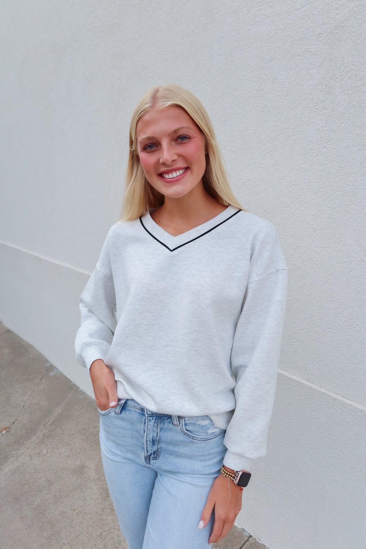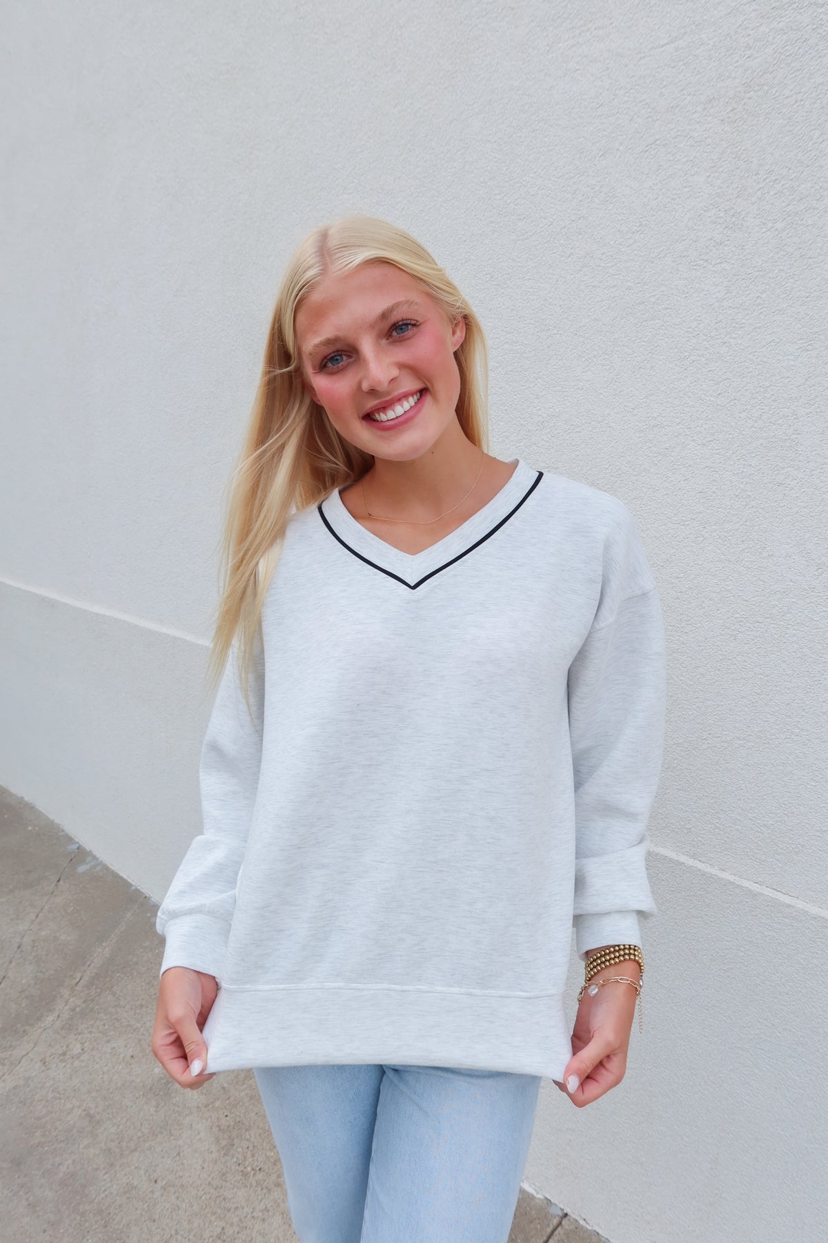 Experience casual comfort with this soft grey crew neck top, designed for everyday ease. Its plush fabric feels gentle against the skin, while the relaxed fit ensures all-day coziness. Perfect for lounging or layering, this top combines simplicity and softness to keep you looking effortlessly stylish and feeling comfortable.