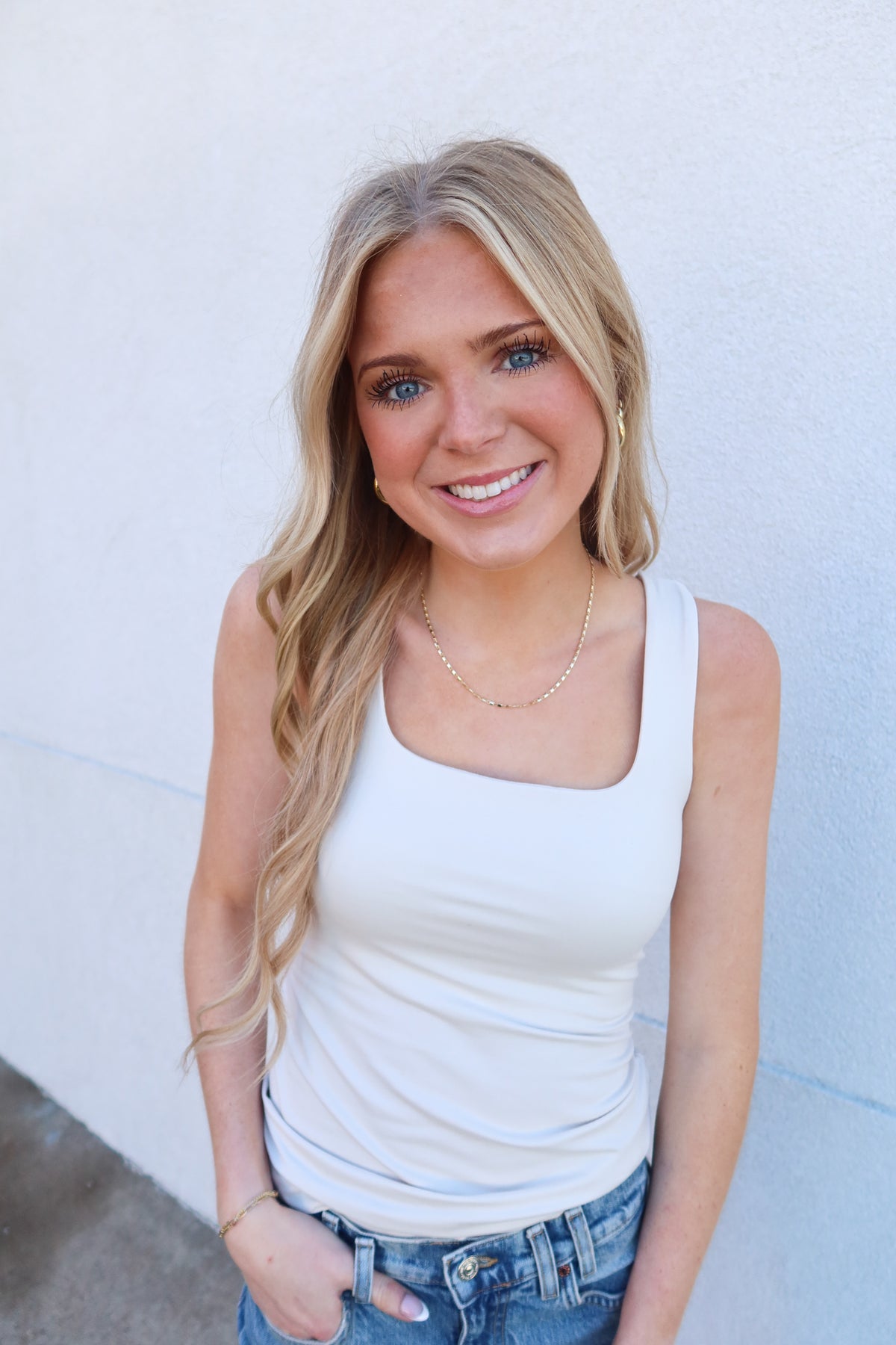 Elevate your everyday wardrobe with this timeless White Pearl Square Neck Tank Top. The sophisticated square neckline flatters your silhouette while the breathable fabric keeps you comfortable all day long. Perfect for layering under blazers or wearing solo during warmer months, this versatile piece transitions seamlessly from office to weekend. The crisp white hue pairs effortlessly with any bottoms, making it an essential staple you'll reach for again and again. Invest in quality basics that work as hard as you do.