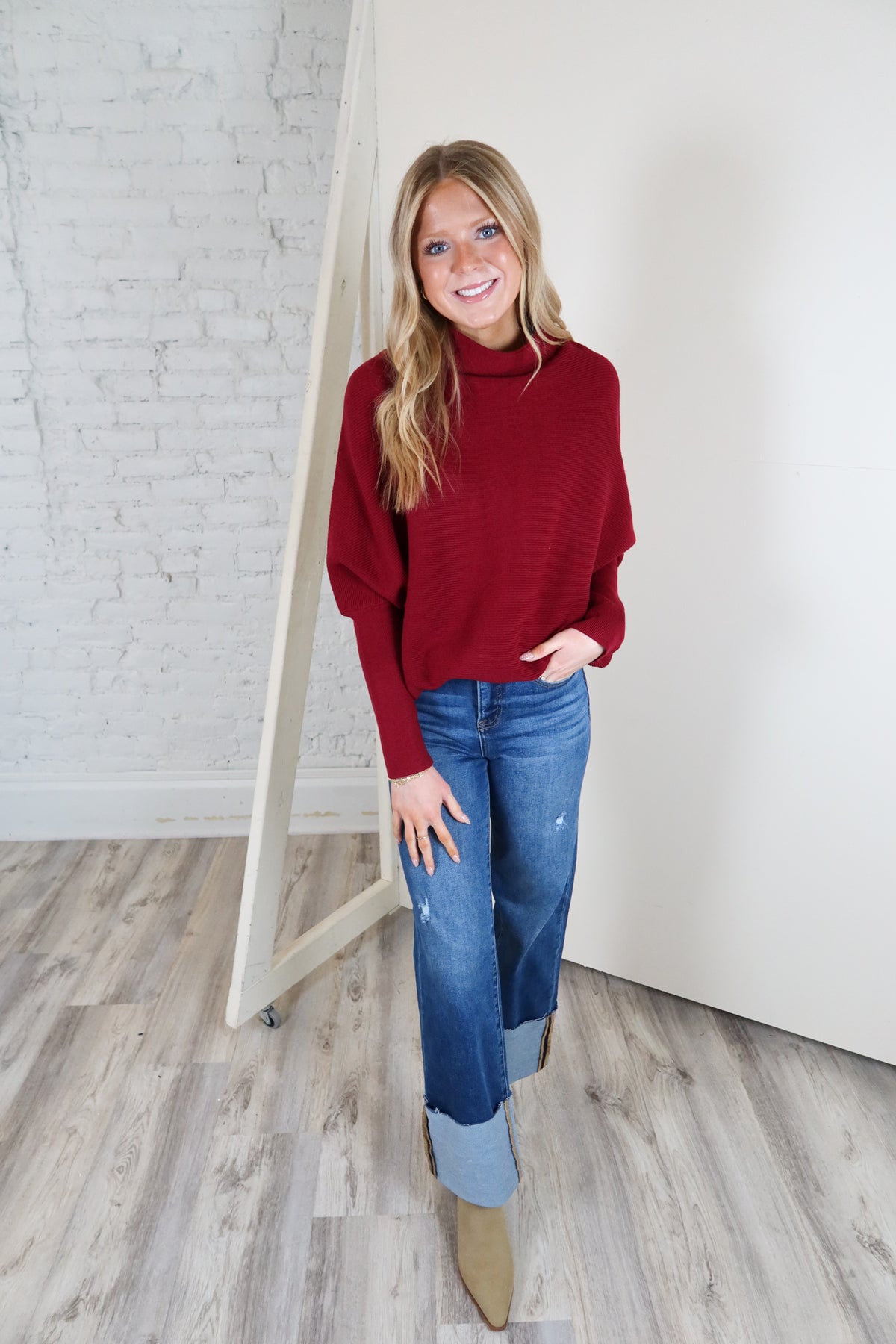 Elevate your autumn wardrobe with the Cabernet Viscose Dolman Sleeve Mock Neck Sweater. Designed for an elegant, chic look, this sweater features a refined mock neck and gracefully draped dolman sleeves. Made from luxuriously soft viscose, it offers both comfort and style, perfect for sophisticated layering during the cooler season.