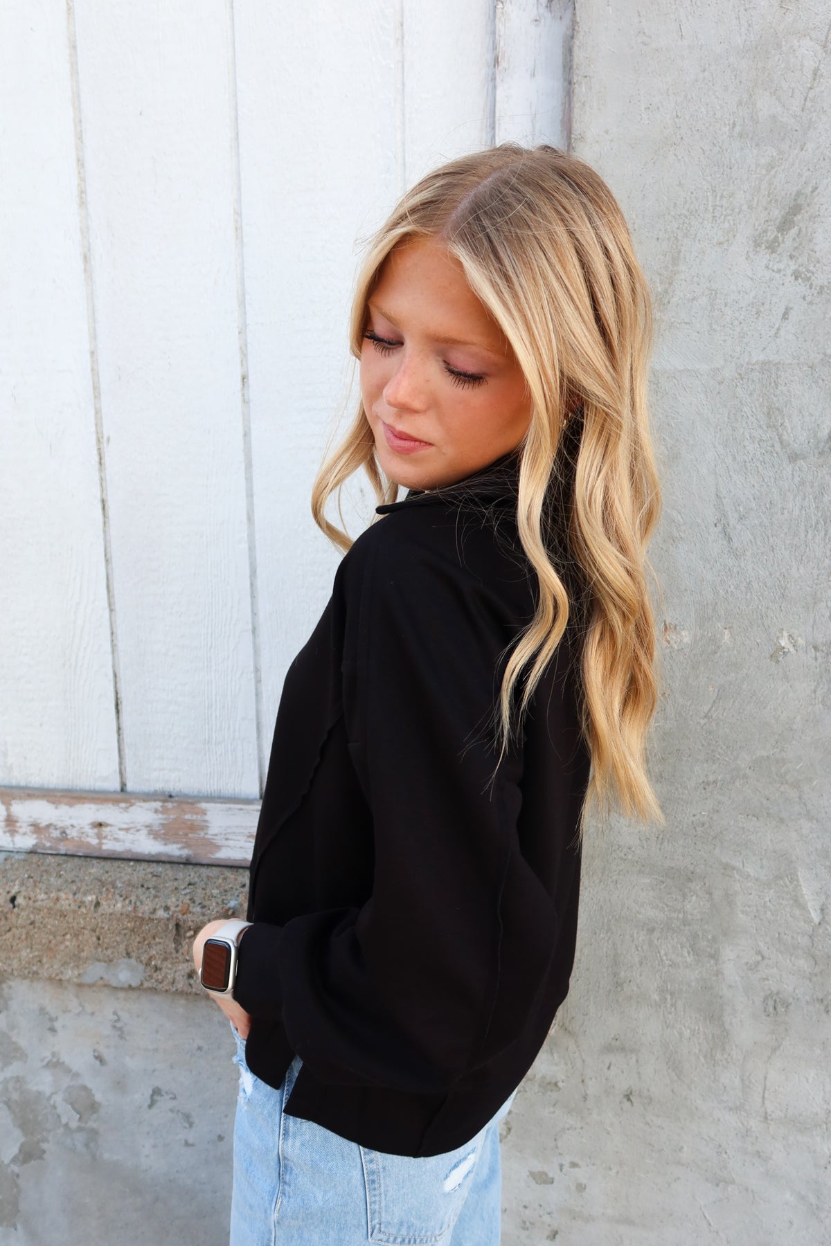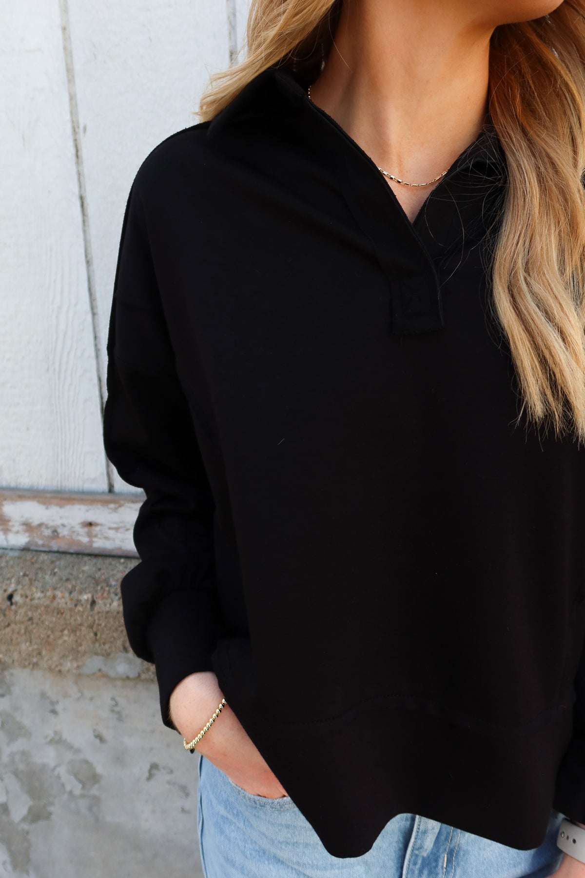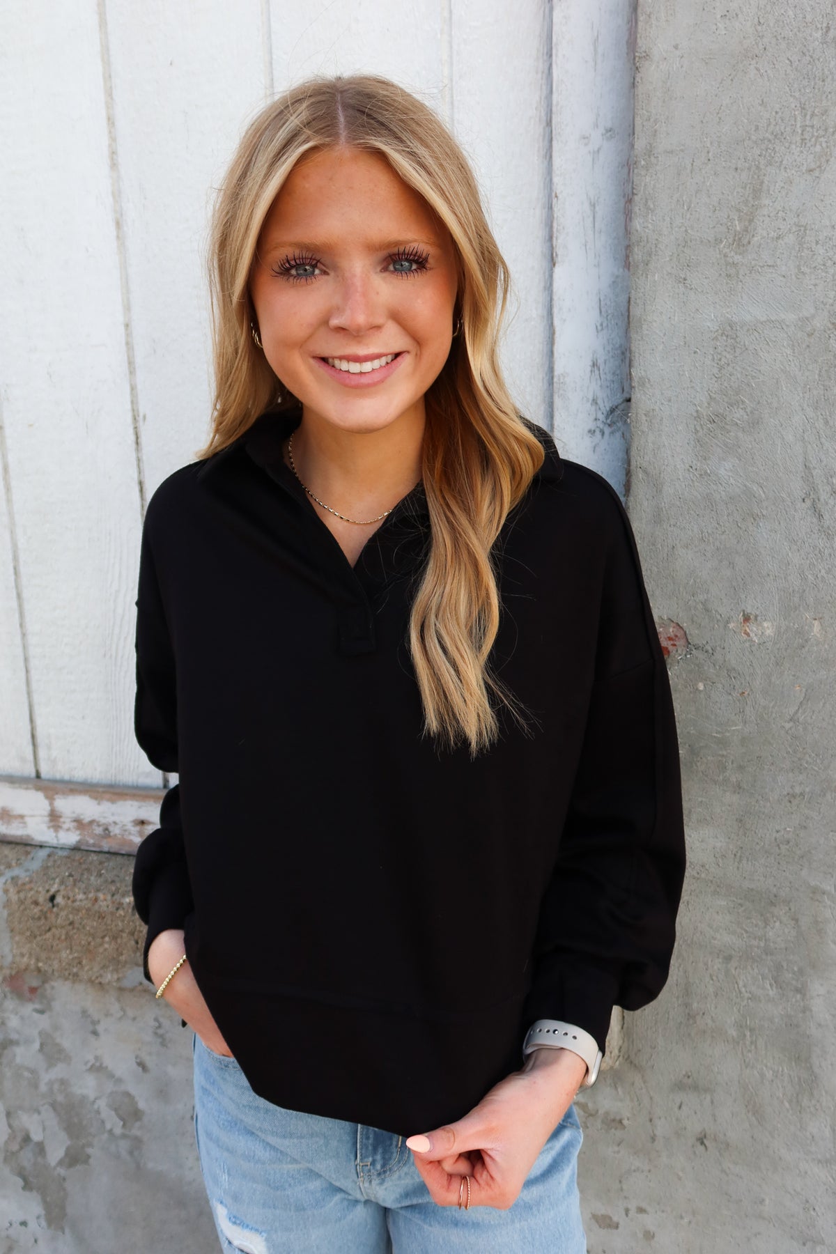 Elevate your wardrobe with The Essential Black Collared Top—designed for versatility and effortless style. Its sleek black fabric and classic collar create a polished look perfect for work or casual outings. This top pairs seamlessly with jeans or skirts, making it a go-to piece for any occasion. Comfortable and timeless, it ensures you look sharp while feeling great all day long.