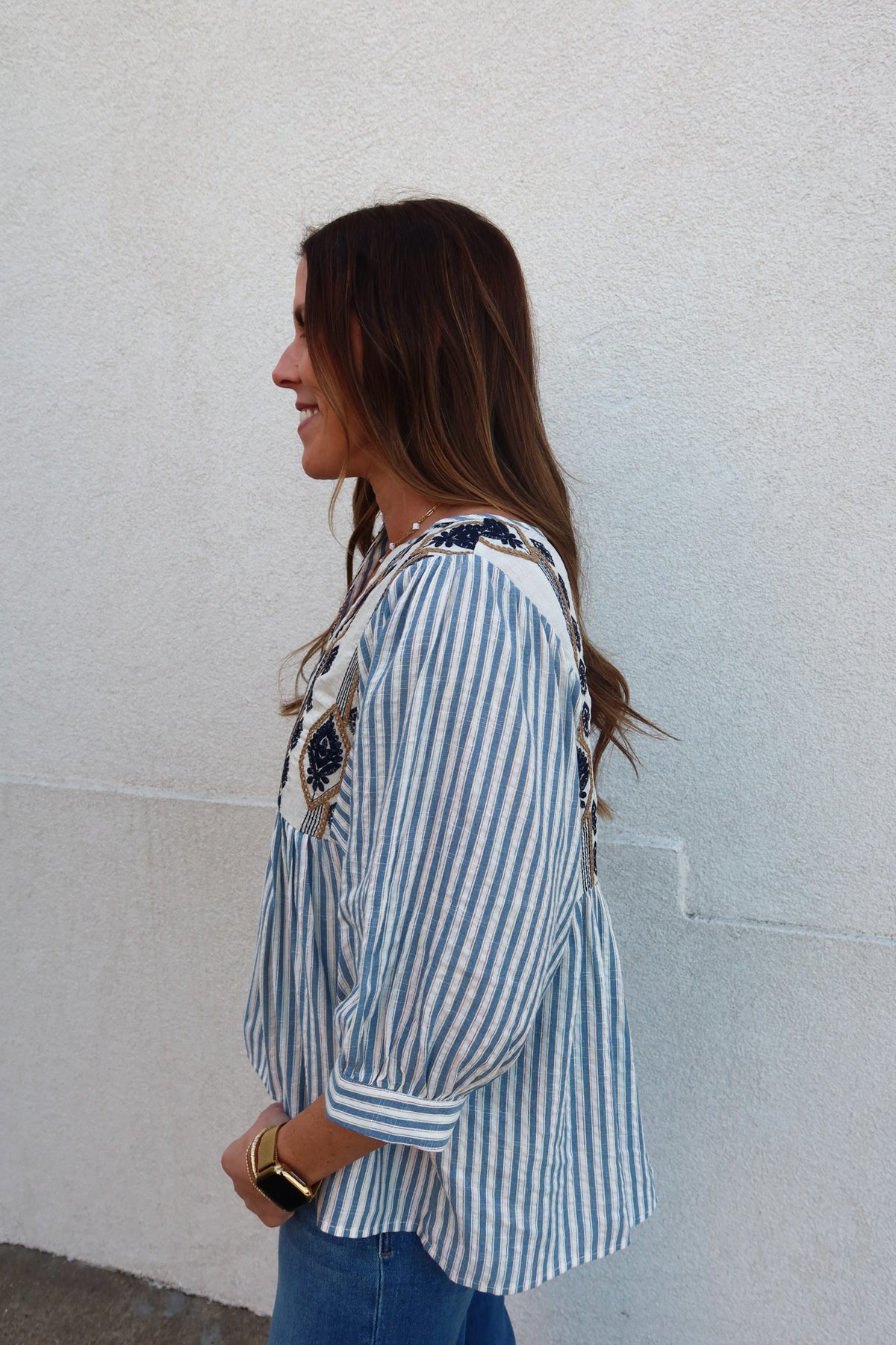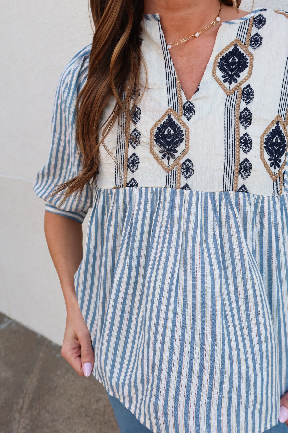 Elevate your everyday wardrobe with the Indigo Charm Embroidered Top, a versatile piece that seamlessly transitions from casual to polished. Featuring intricate embroidered detailing against a rich indigo base, this top adds visual interest and sophistication to any outfit. The comfortable fit and quality construction make it perfect for layering or wearing solo, whether you're heading to the office, meeting friends, or enjoying a relaxed weekend. A timeless staple that delivers both style and wearability.