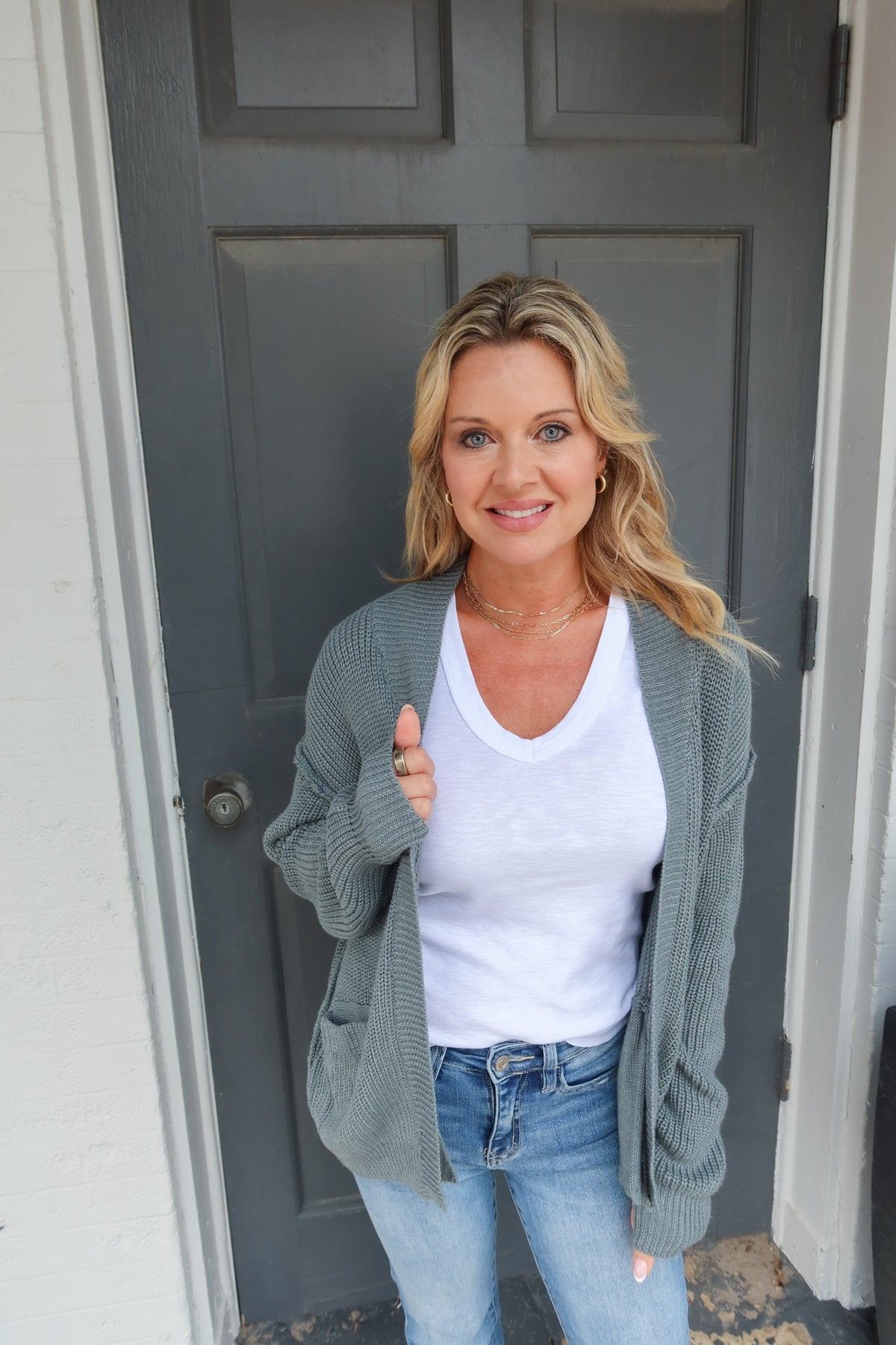 Stay cozy and stylish with the I Love It Here Emerald Chunky Knit Cardigan. Its thick knit fabric provides warmth and comfort, while the practical pockets add convenience for carrying essentials. Perfect for layering, this cardigan brings a pop of rich emerald color to elevate your everyday look effortlessly.