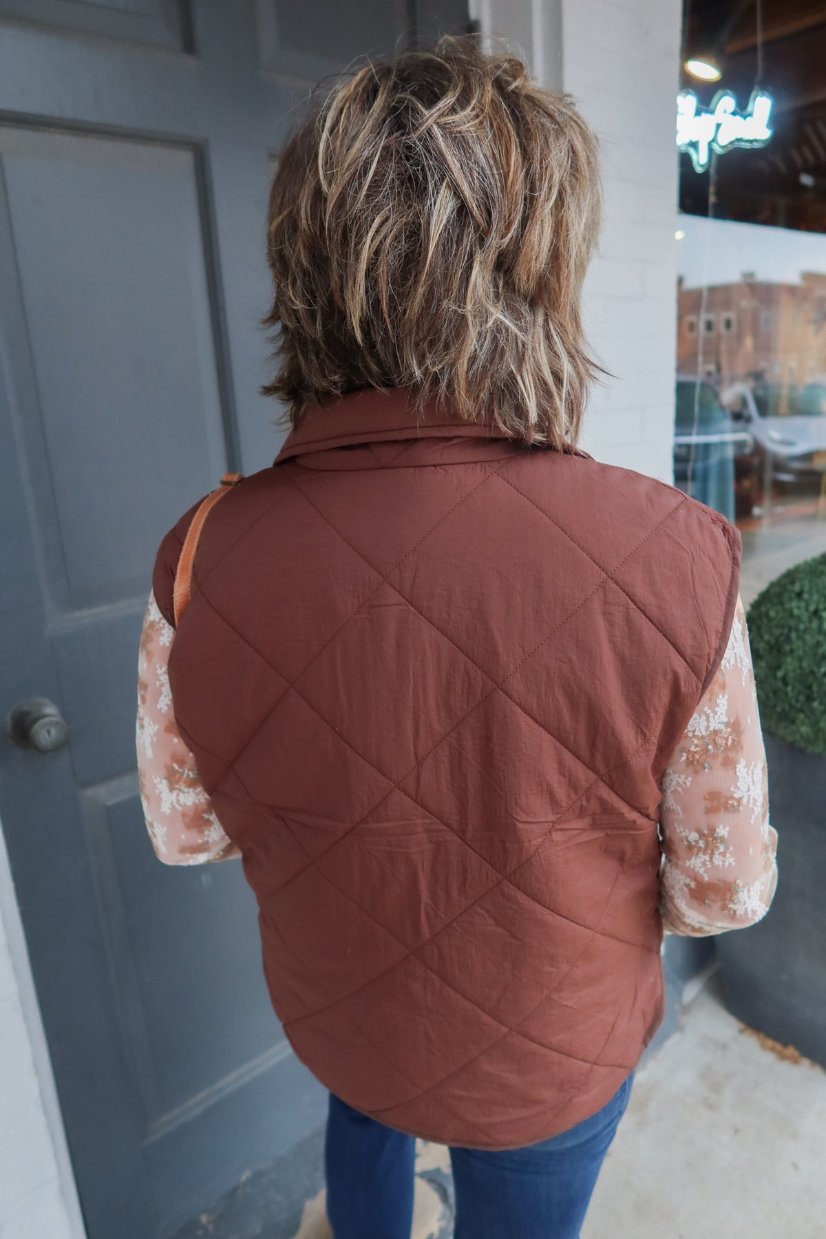 Layer up with effortless style in this chocolate quilted puffer vest. The convenient front zip closure makes it easy to adjust your warmth on the go, while the quilted fabric provides lightweight insulation perfect for transitional seasons. Functional side pockets keep your essentials within reach. Whether you're running errands or heading out for casual adventures, this versatile vest pairs seamlessly with any outfit and delivers the comfort and practicality you need.