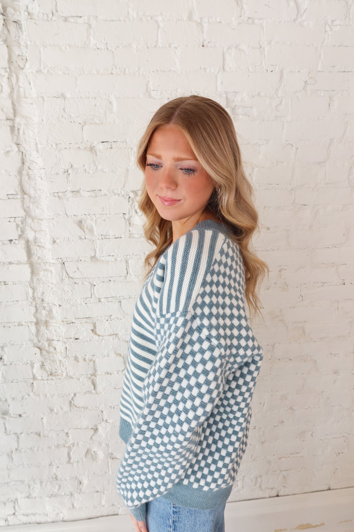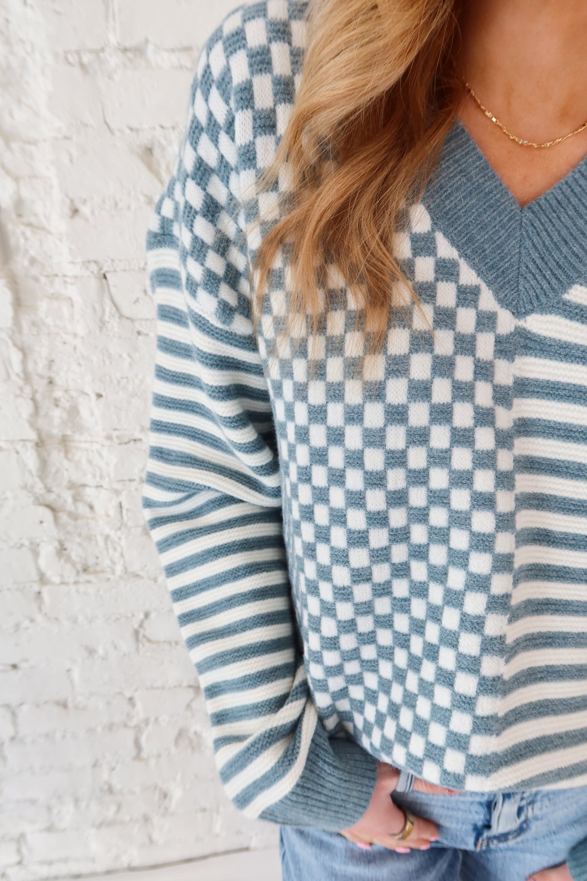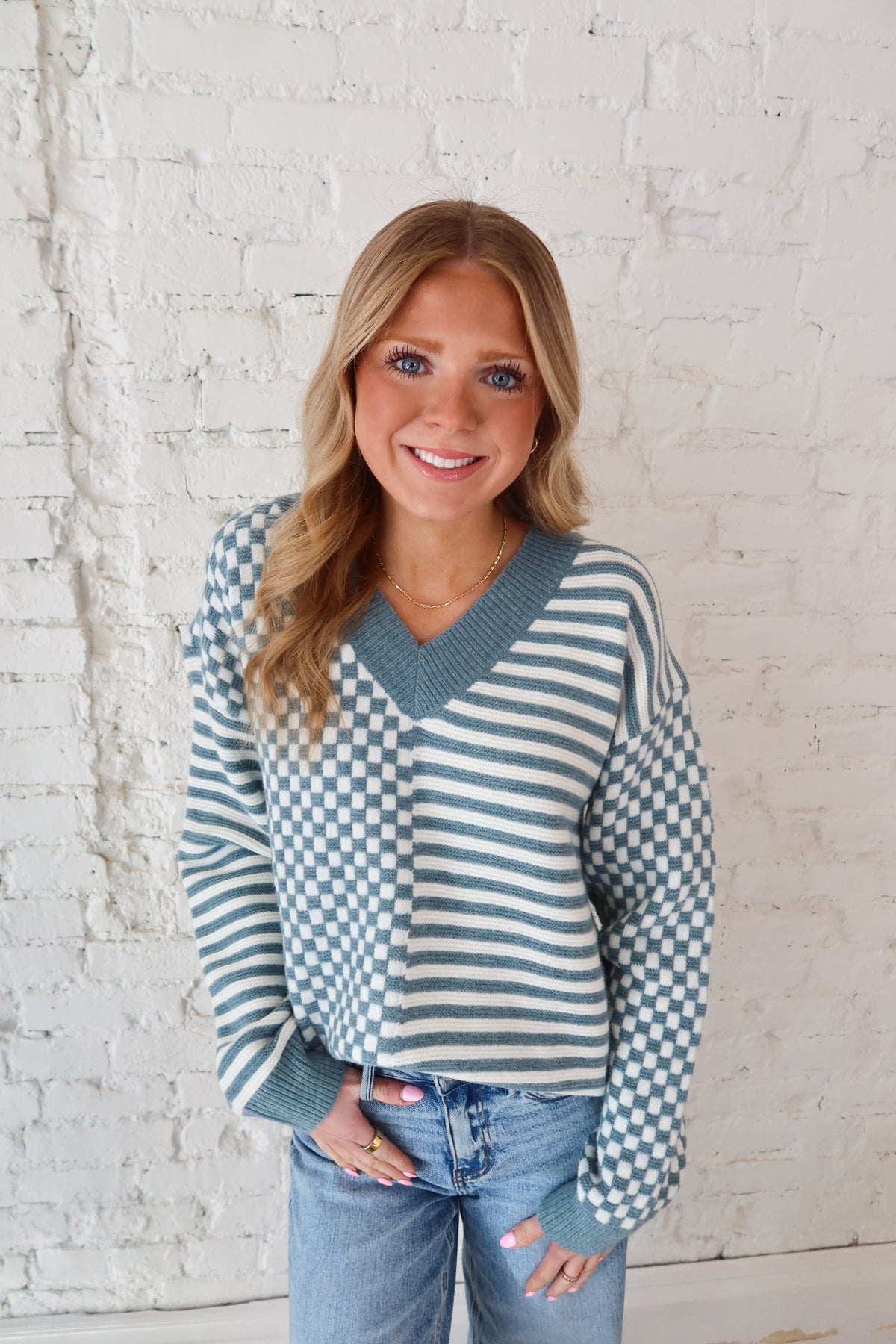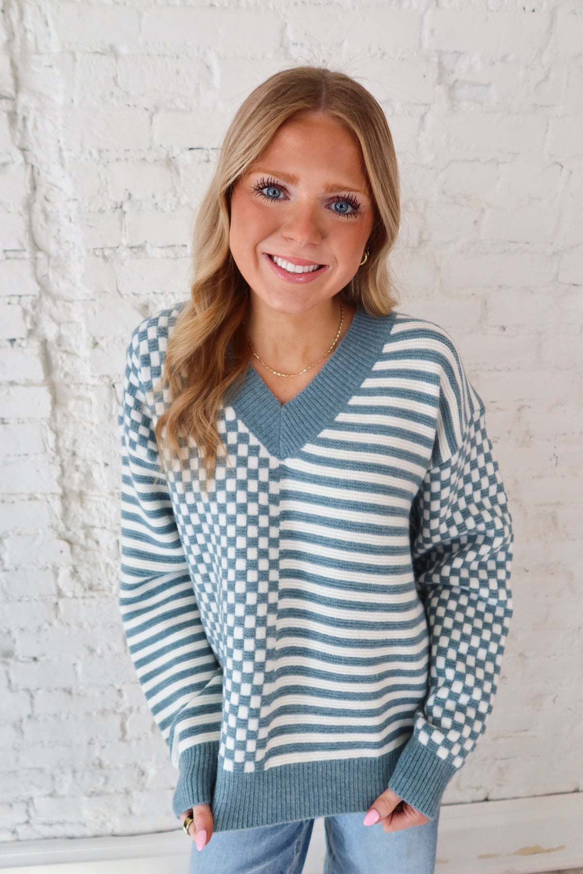 Elevate your everyday wardrobe with this versatile checked sweater, featuring a flattering V-neck and eye-catching striped and checkered print. The classic pattern mix adds visual interest while remaining effortlessly wearable, making it perfect for layering over basics or pairing with your favorite denim. Soft, comfortable, and undeniably stylish, this piece transitions seamlessly from casual weekends to polished office days.