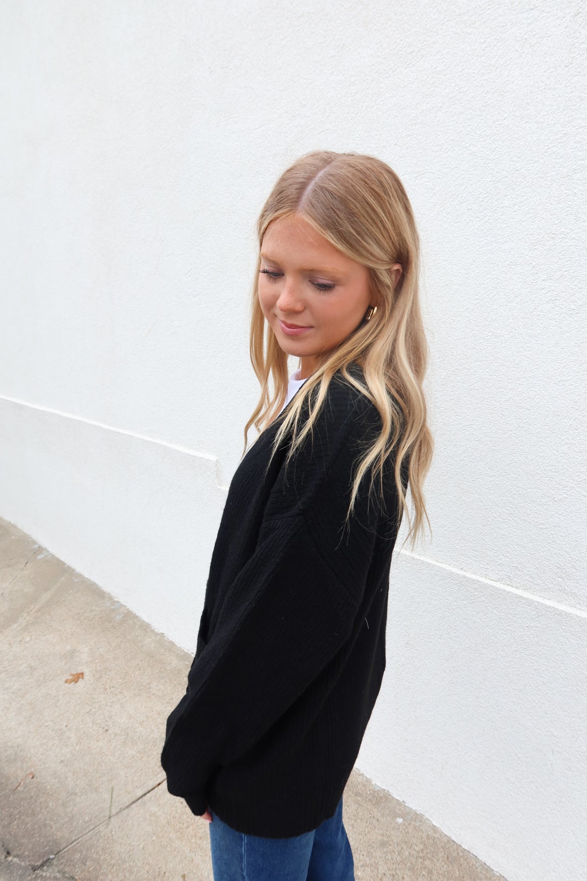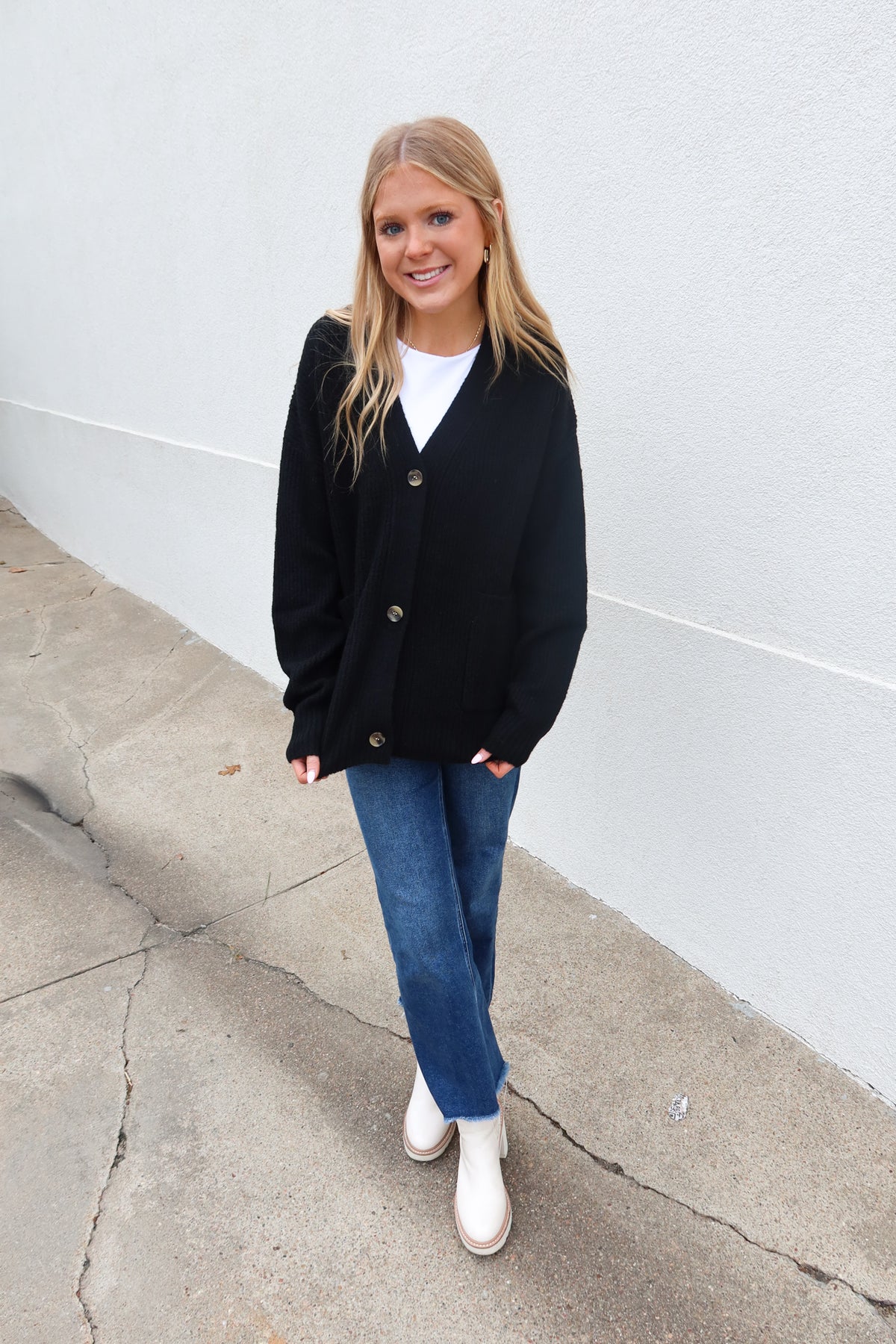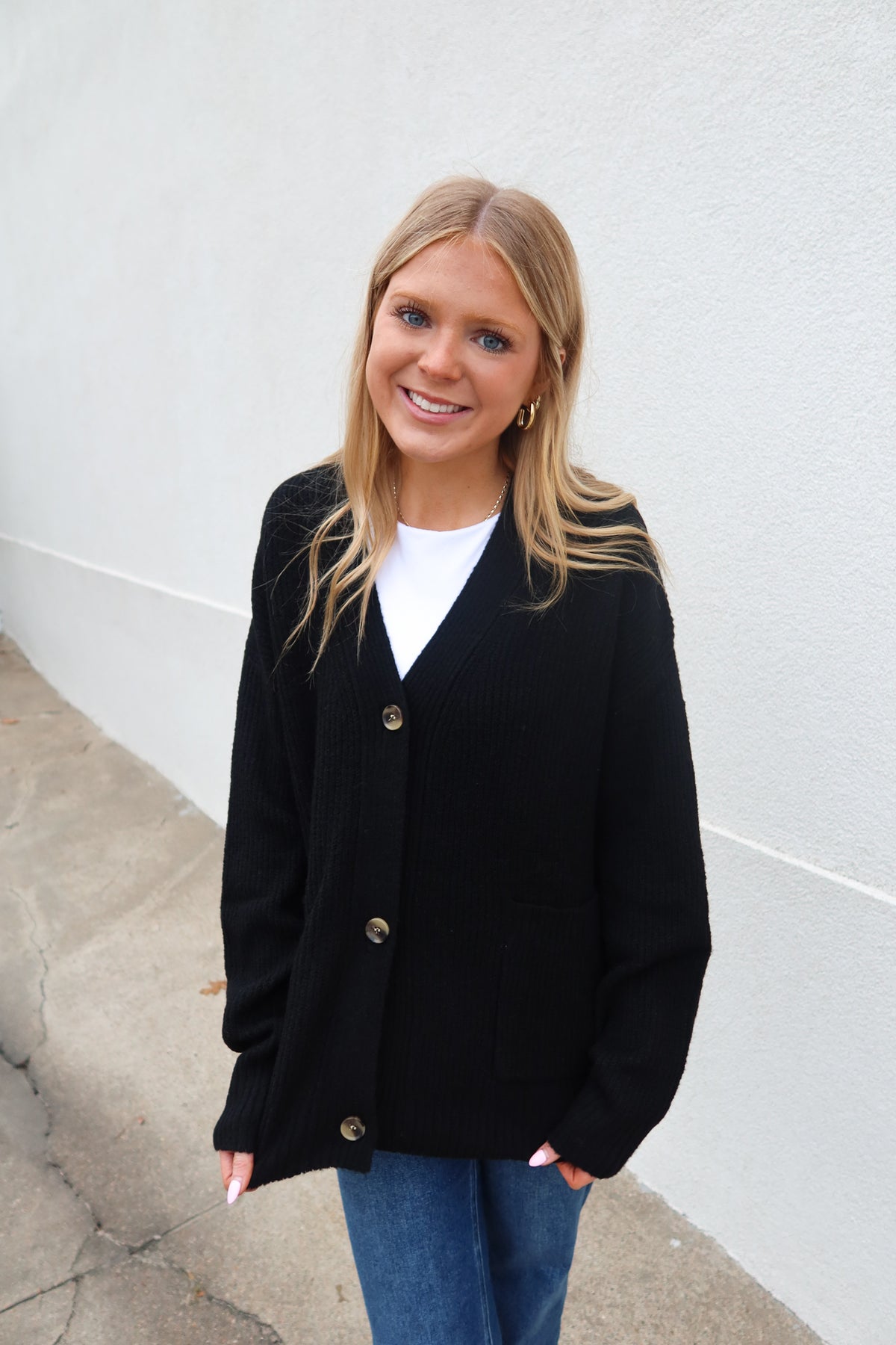 Wrap yourself in effortless autumn style with this Black Button Down Cardigan—the perfect layering piece for crisp fall days. Its timeless design pairs seamlessly with everything from jeans to dresses, while the soft fabric keeps you comfortable and warm. Whether you're heading to the office or settling in for a cozy evening, this versatile cardigan is your go-to for looking polished without sacrificing comfort. Elevate your seasonal wardrobe with a piece that works as hard as you do.