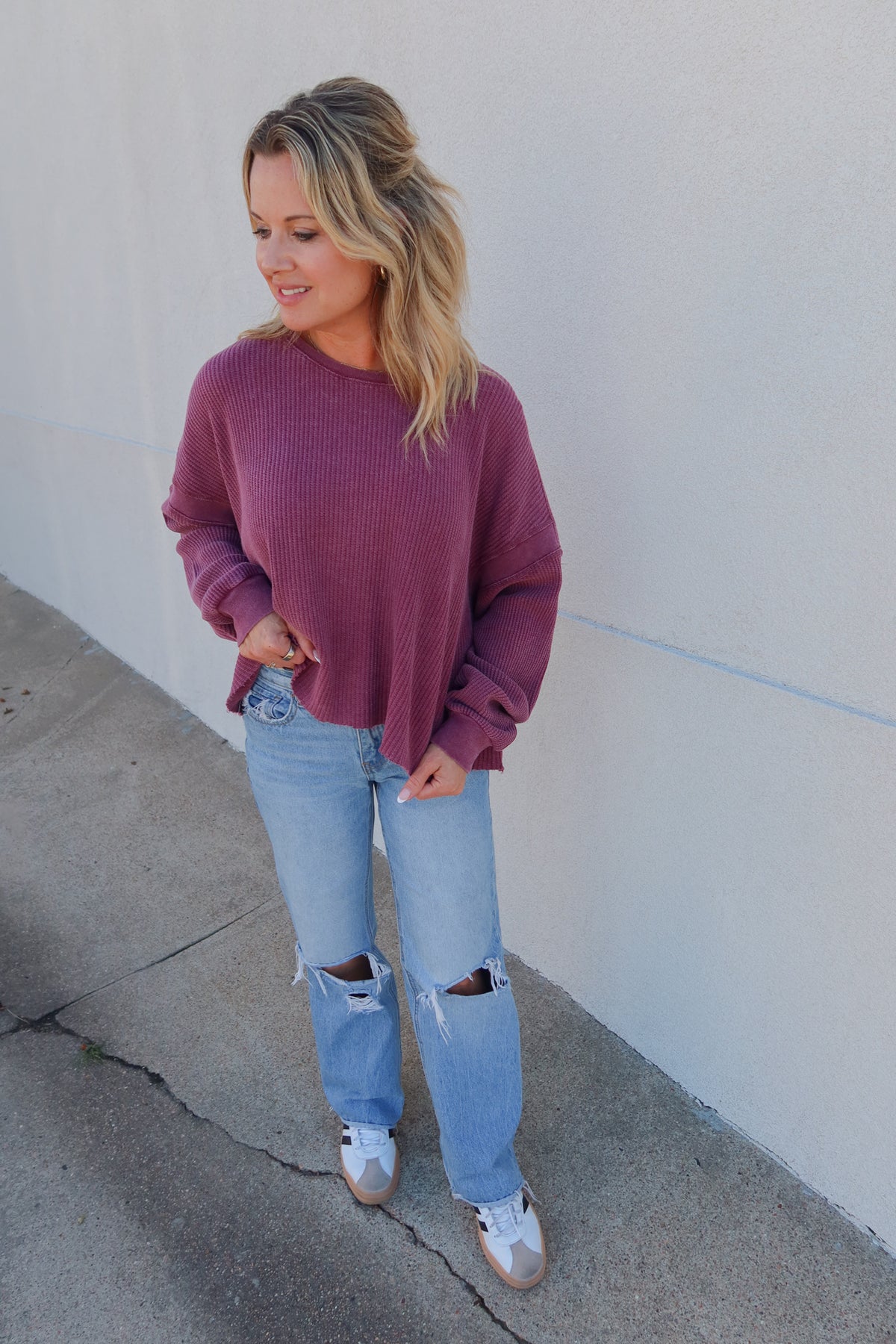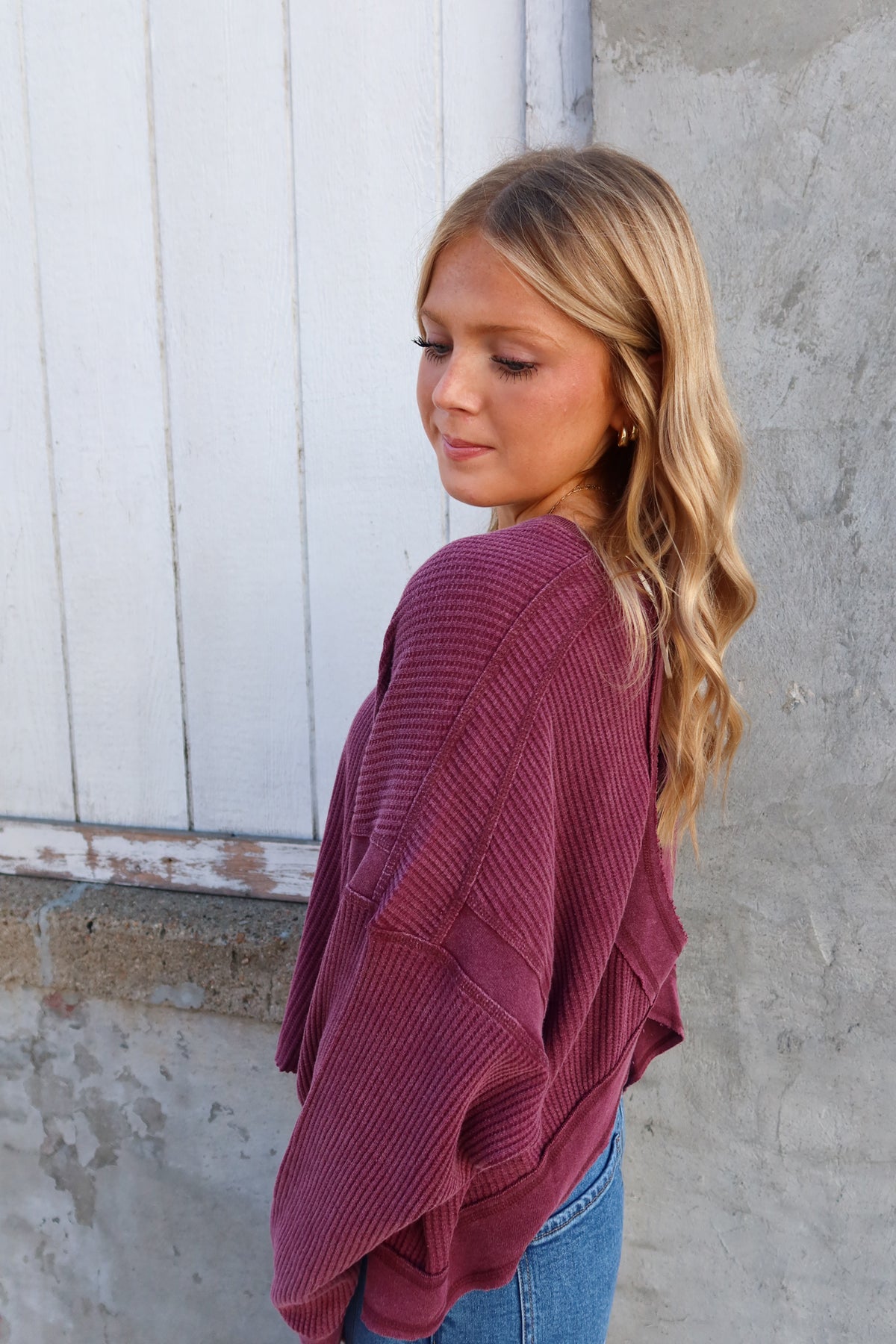 Embrace fall’s crisp air with our Dark Cherry Thermal Top. Crafted for warmth and comfort, its rich cherry hue adds a cozy, stylish touch to your seasonal wardrobe. Perfect for layering or wearing alone, this thermal top keeps you snug without sacrificing flair. Stay warm and look effortlessly chic all season long.