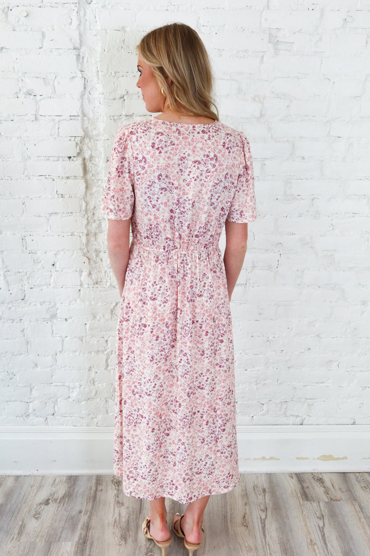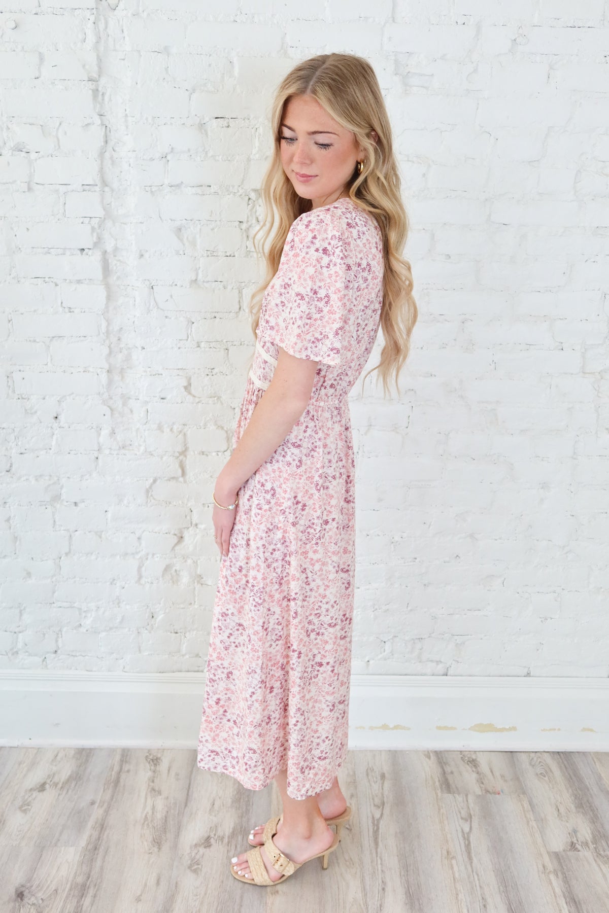 Effortless elegance meets everyday comfort in this flutter button-down midi dress. The soft vanilla and dusty rose palette creates a romantic, versatile look perfect for brunch, work, or casual outings. Flutter sleeves add a playful feminine touch while the midi length offers sophisticated coverage. Classic button-front closure allows for easy styling—wear it buttoned for polished appeal or open over a slip dress for layered dimension. A wardrobe essential that transitions seamlessly from season to season.