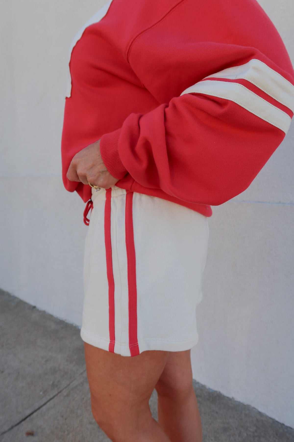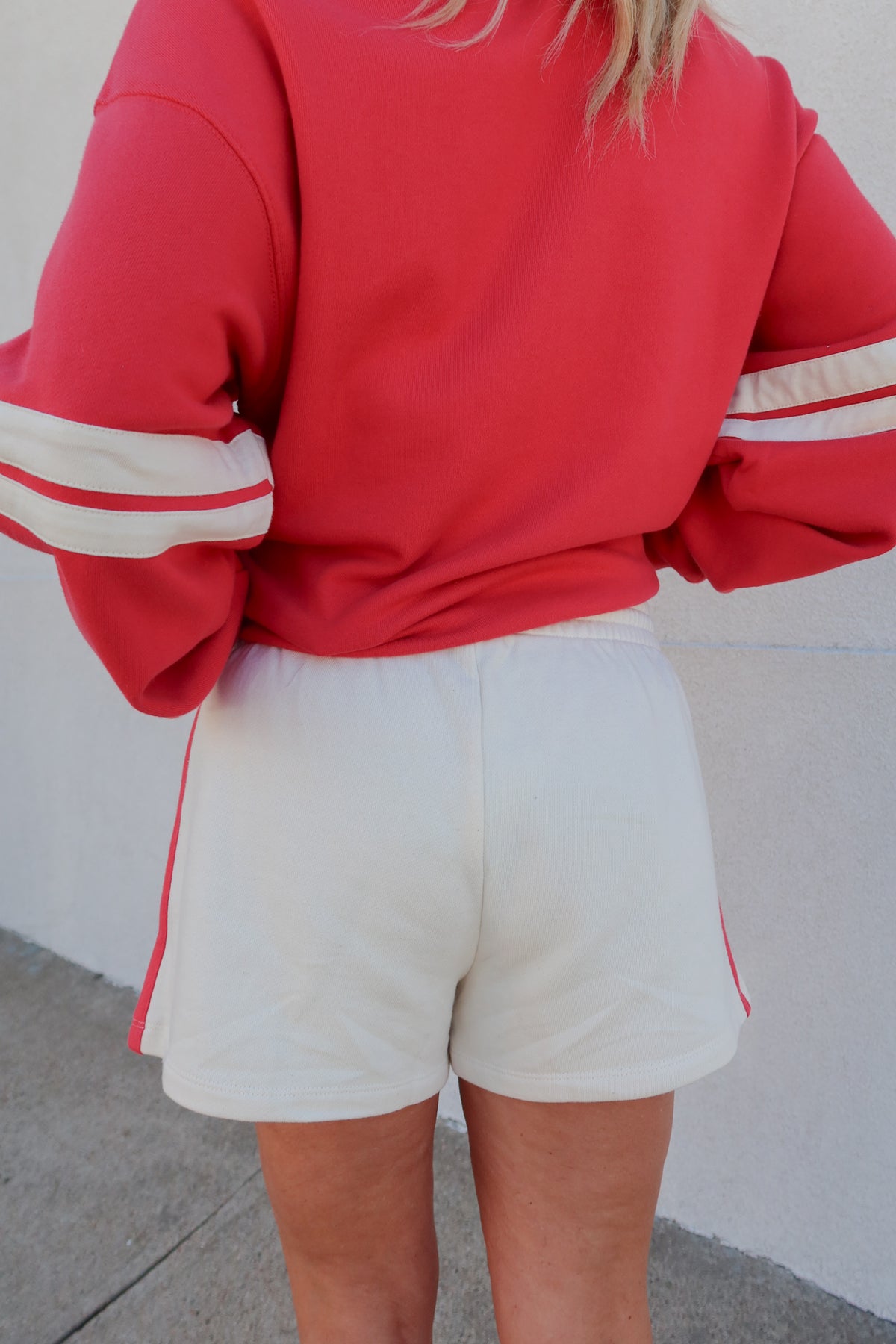Step into game day with the Cream Red Varsity Sideline Shorts! These shorts blend classic varsity style with all-day comfort, making them perfect for casual wear or cheering on your favorite team. The vibrant red and cream colors add a cute, sporty touch to your outfit, while the soft fabric ensures you stay comfortable whether you’re on the sidelines or out with friends. Elevate your casual wardrobe with these must-have shorts that combine style, comfort, and game day spirit.