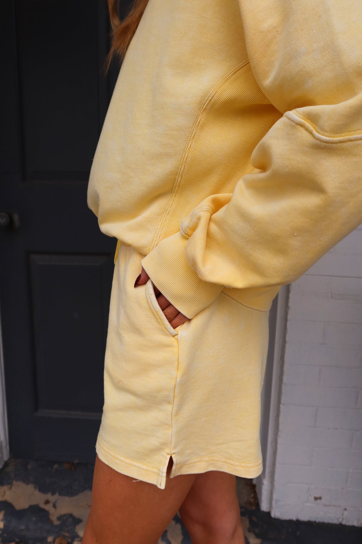 Slip into effortless comfort with these Citrus Cream French Terry Shorts. Crafted from soft, breathable French terry fabric, they're perfect for lounging at home or running casual errands. The relaxed fit and gentle citrus-inspired hue create a laid-back vibe that pairs seamlessly with your favorite tee or tank. Whether you're unwinding on the weekend or staying cozy during warmer months, these shorts deliver the perfect balance of style and comfort. A wardrobe essential that feels as good as it looks.