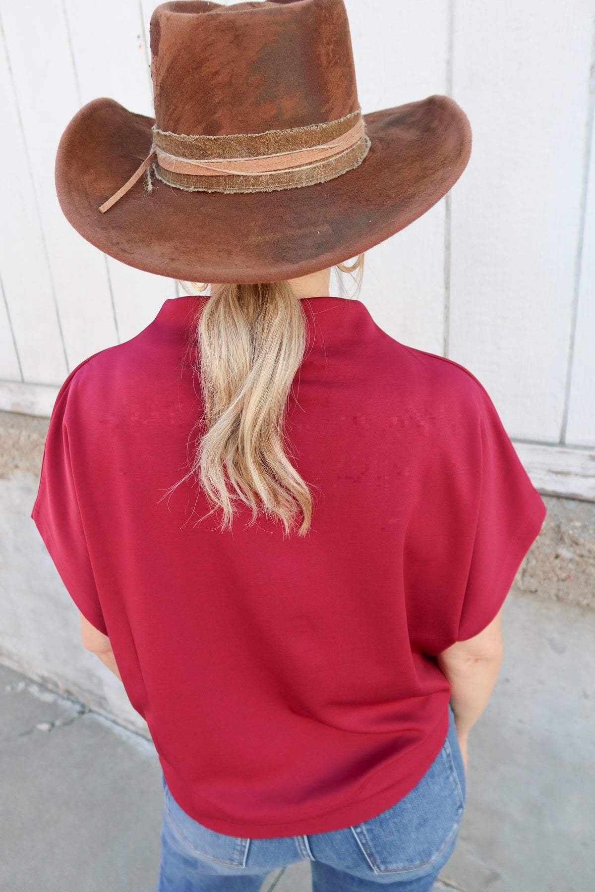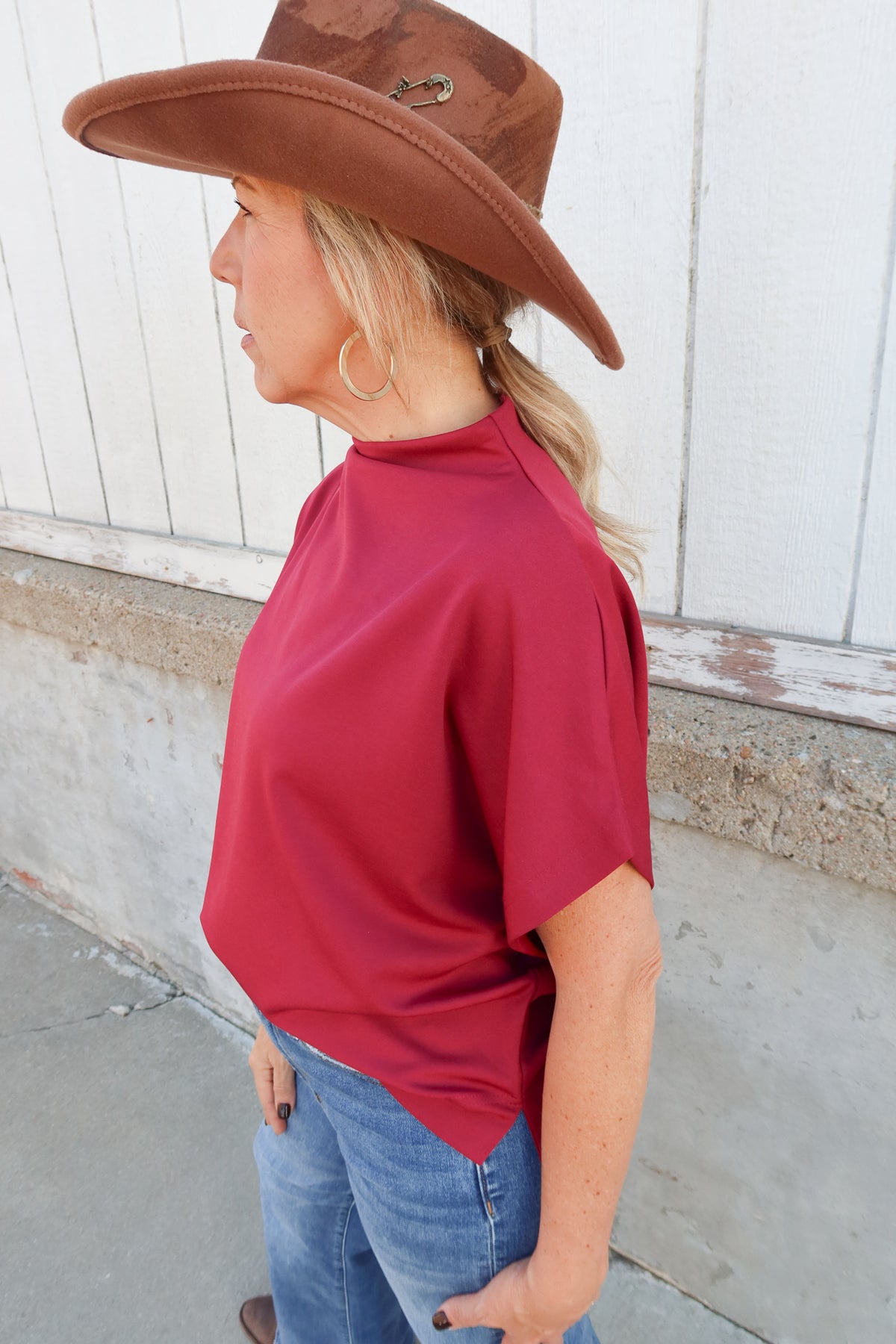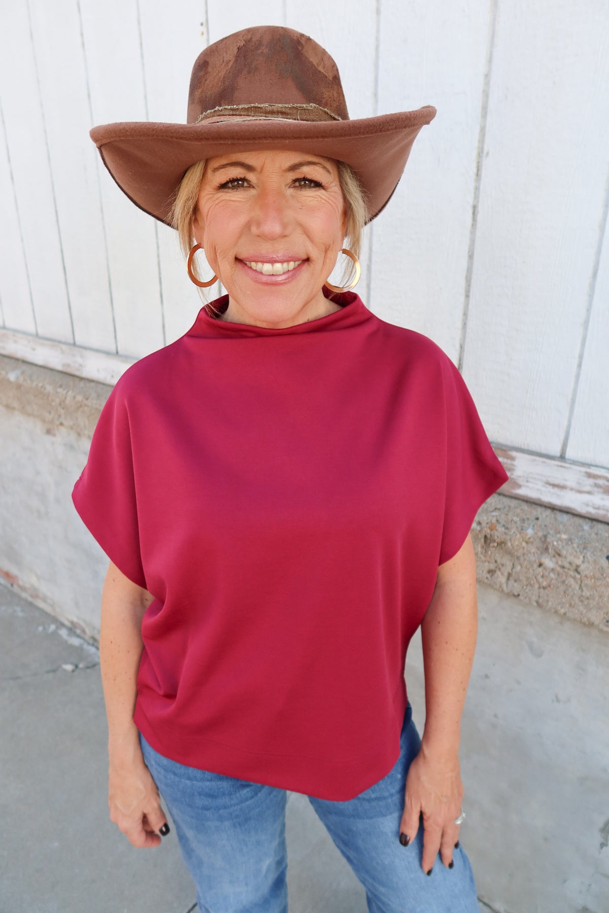 Elevate your fall formal wardrobe with this chic wine-colored mock neck top. Its rich hue and sleek silhouette create a refined look perfect for any elegant occasion. The mock neck detail adds sophistication, while the flattering fit ensures you feel confident and stylish throughout the event. A must-have piece for graceful seasonal dressing.